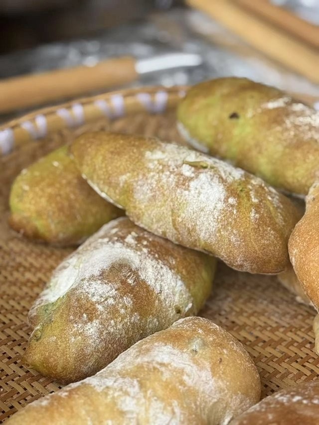 欧包:很纯粹,配方简单,只有面粉、少量盐、水、酵母。选用新疆的有机面粉以及加上土窑烤面包高温短时的特性,可以锁住水分,里面比较软。