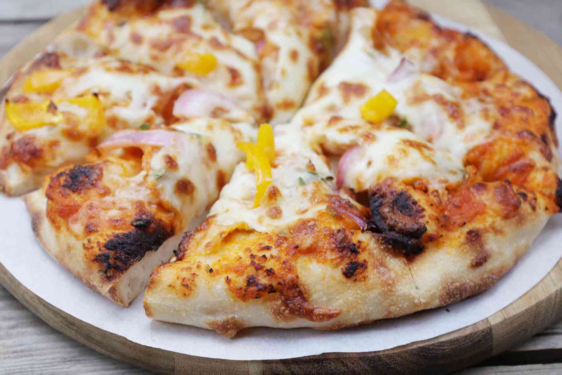 芒果披萨(甜):饼底(面粉、水、酵母、盐)、芒果、芝士碎
