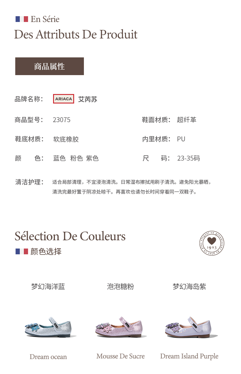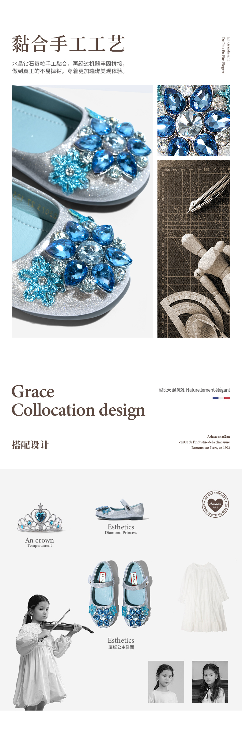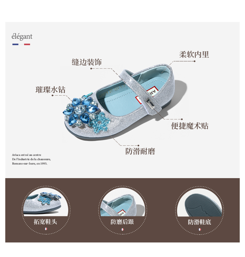 ARIACA艾芮苏女童公主鞋爱莎软底儿童水晶鞋春秋皮鞋女孩宝宝单鞋