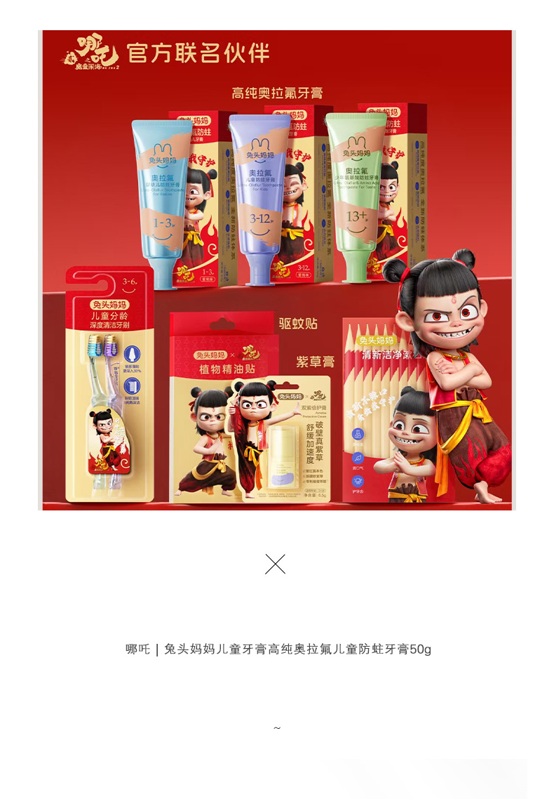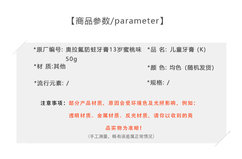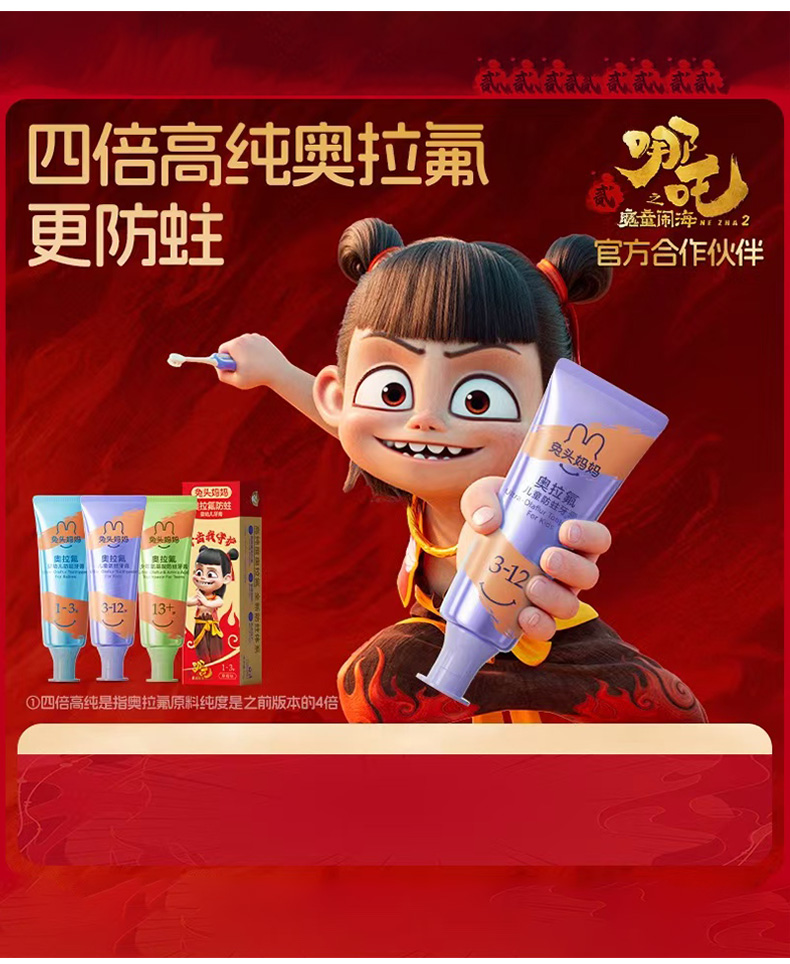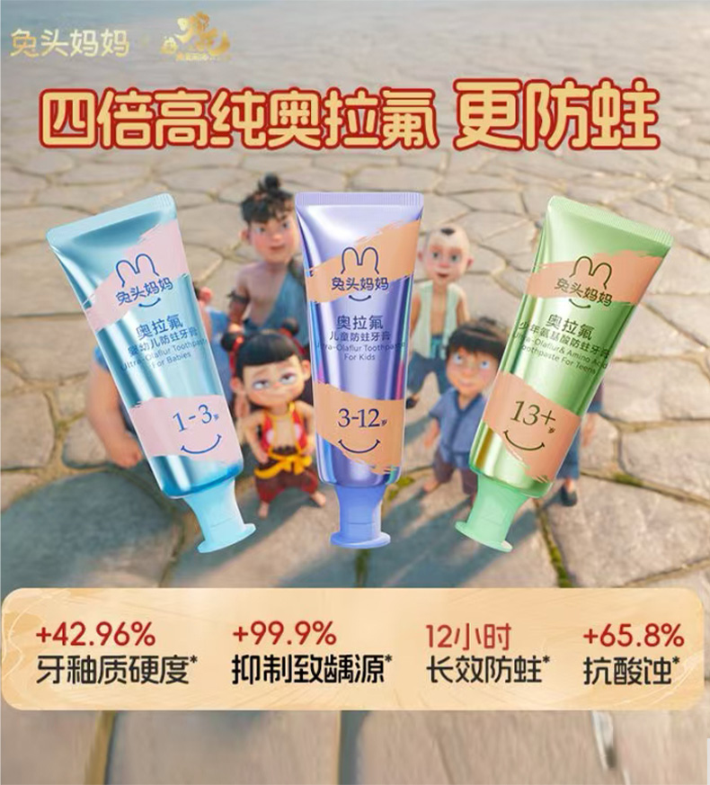 兔头妈妈奥拉氟防蛀牙膏13岁蜜桃味50g 儿童牙膏161919034