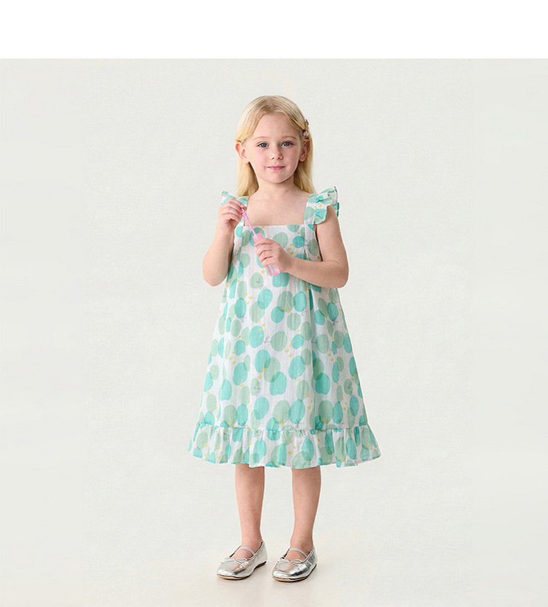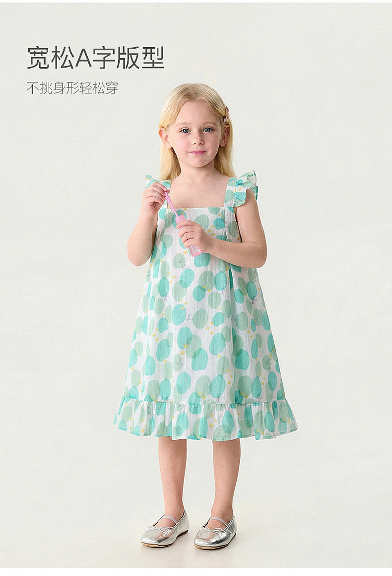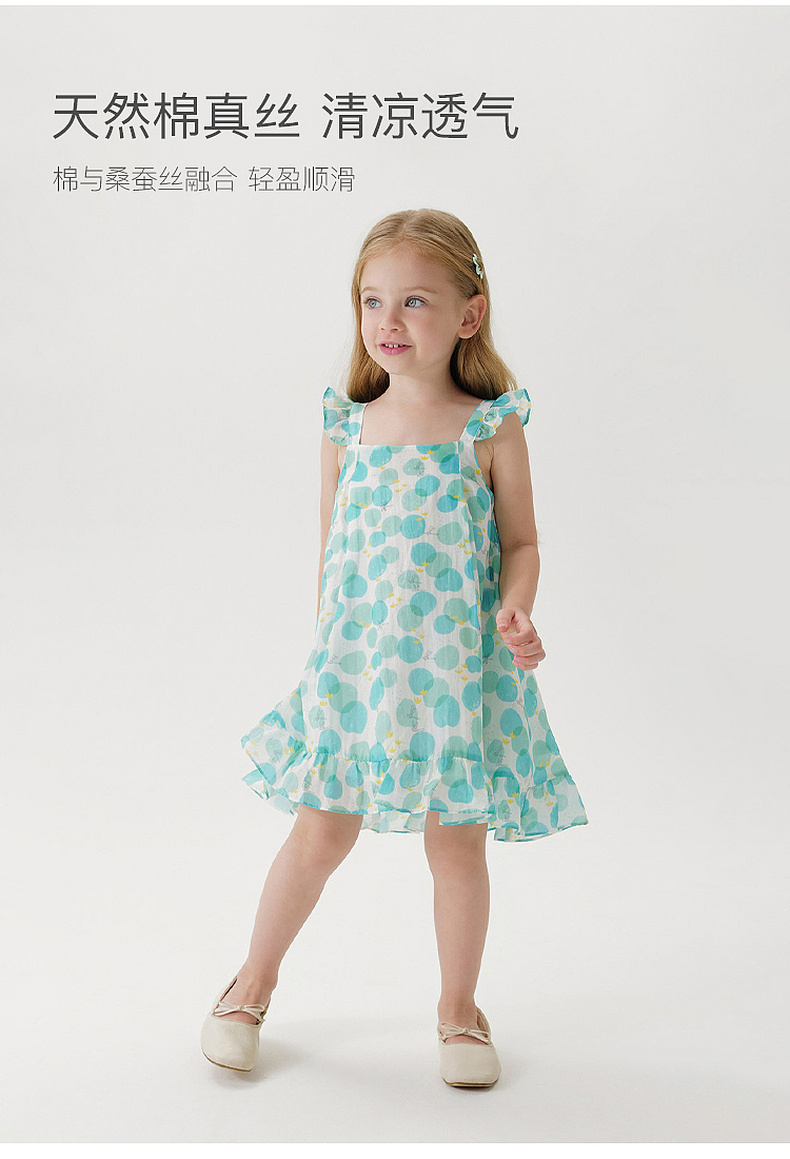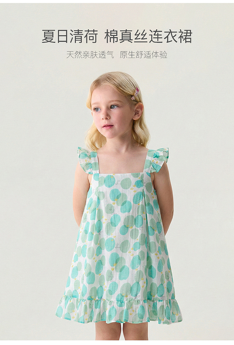 马克珍妮夏日清荷女童棉真丝连衣裙2026年夏装新款561055
