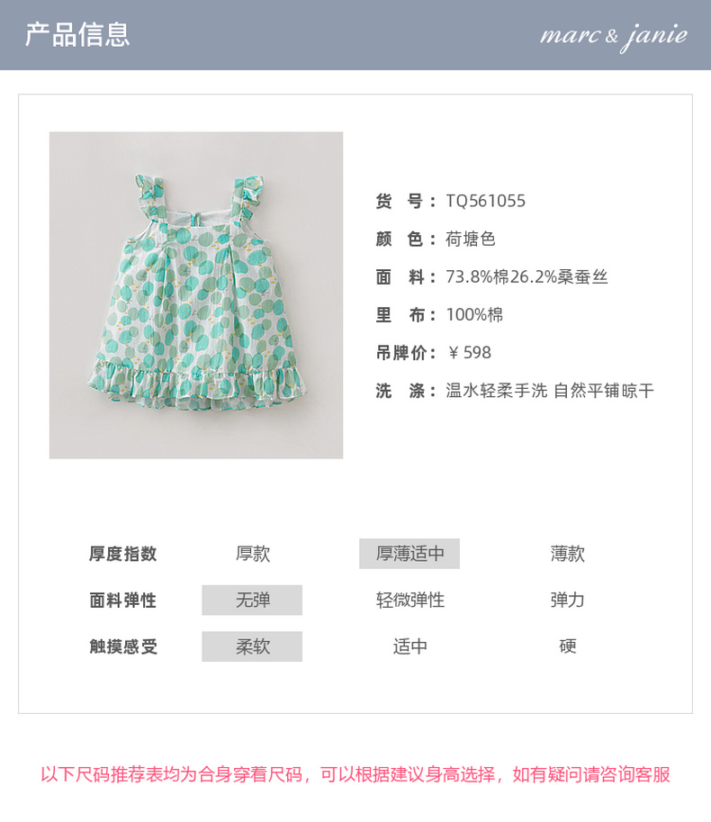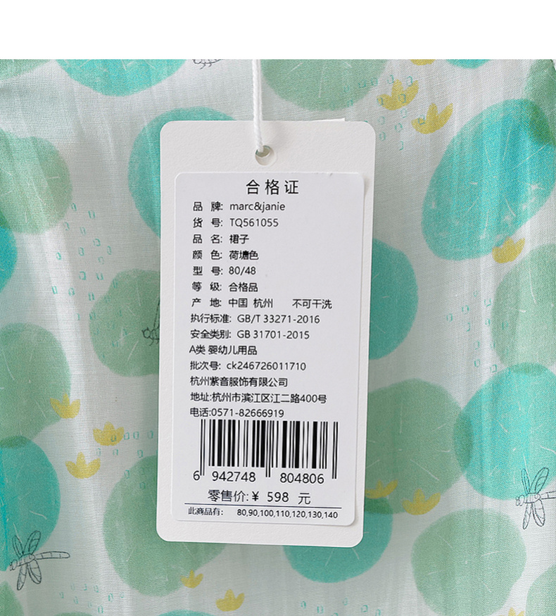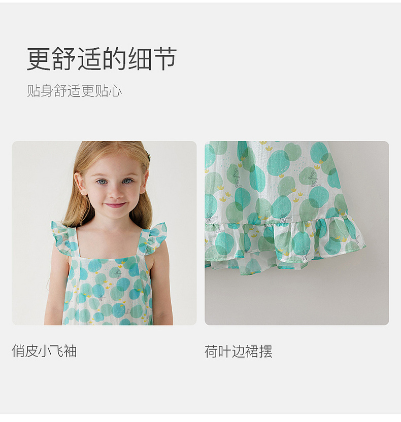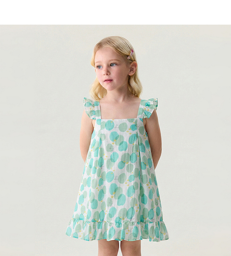 马克珍妮夏日清荷女童棉真丝连衣裙2026年夏装新款561055