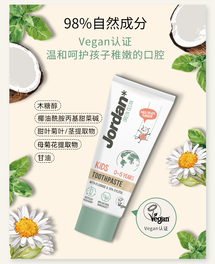 挪威Jordan进口婴幼儿童牙膏 0-1-2-3-5岁宝宝牙膏