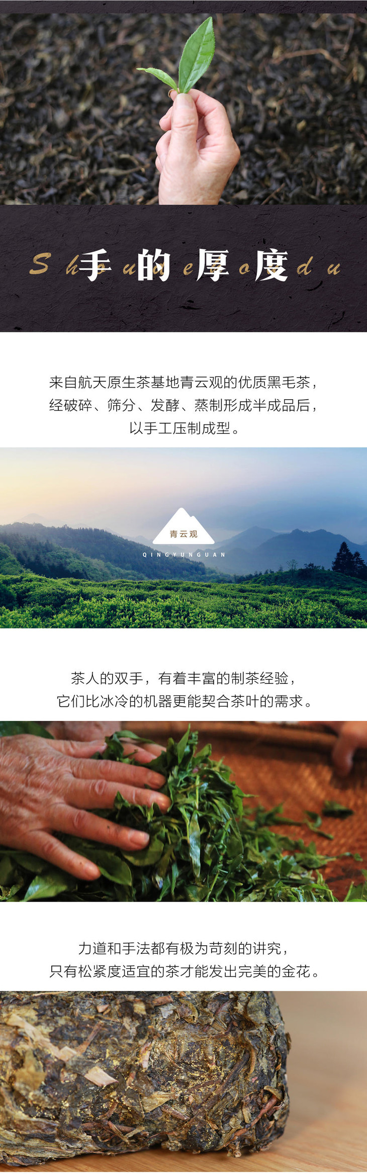 云台崖 黑茶湖南安化正品手筑金花茯砖茶正宗湖南特产茶叶礼盒装 航天原生茶基地--青云观 云台大叶种