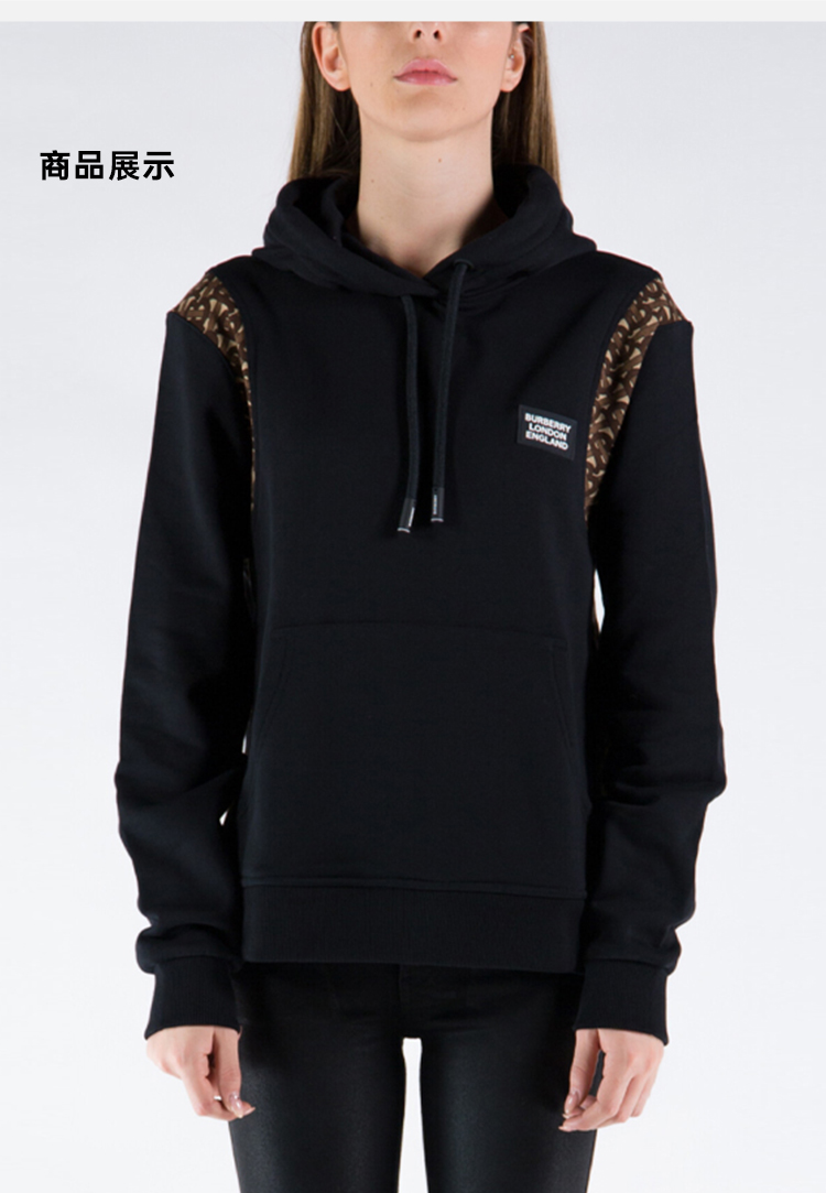 BURBERRY 巴宝莉 女士TB专属标识印花裁片棉质宽松连帽卫衣 黑色 8032294 A1189