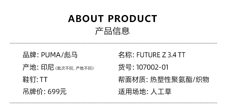 SFS彪马Puma FUTURE Z 3.4 Creative中端TT碎钉TF足球鞋107162-01