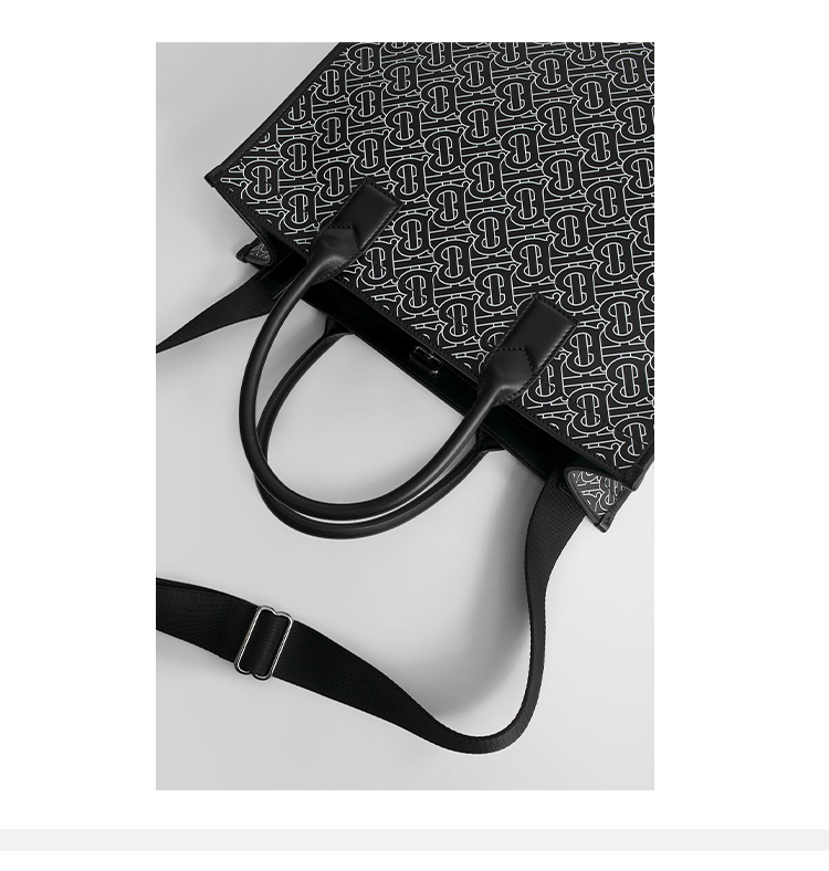 BURBERRY 博柏利 TB专属标识印花皮革托特包 男士单肩包 黑色 8049435 A6590