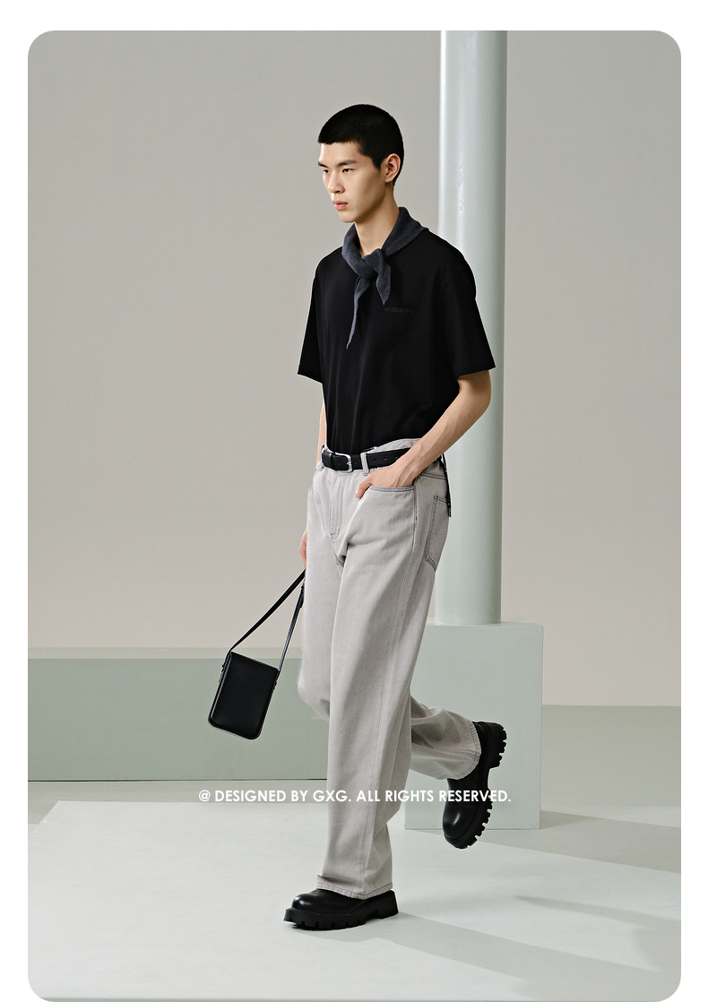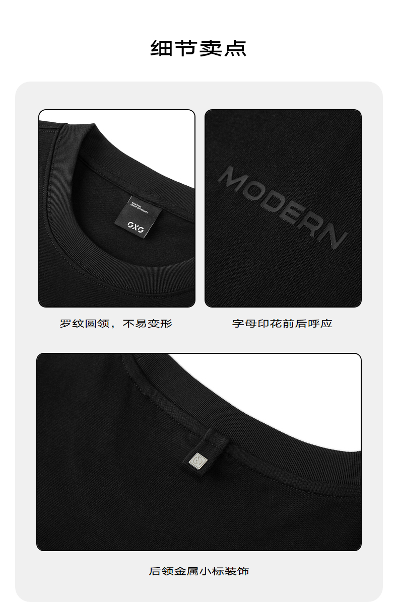 GXG男装 黑色宽松圆领短袖T恤 24年夏季热卖G24X442028