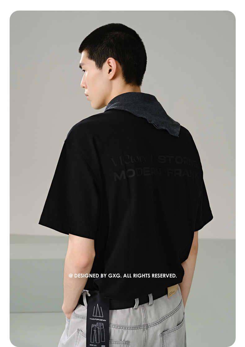 GXG男装 翻领卫衣撞色拼接肌理上衣polo领长袖内搭 2025秋季新品