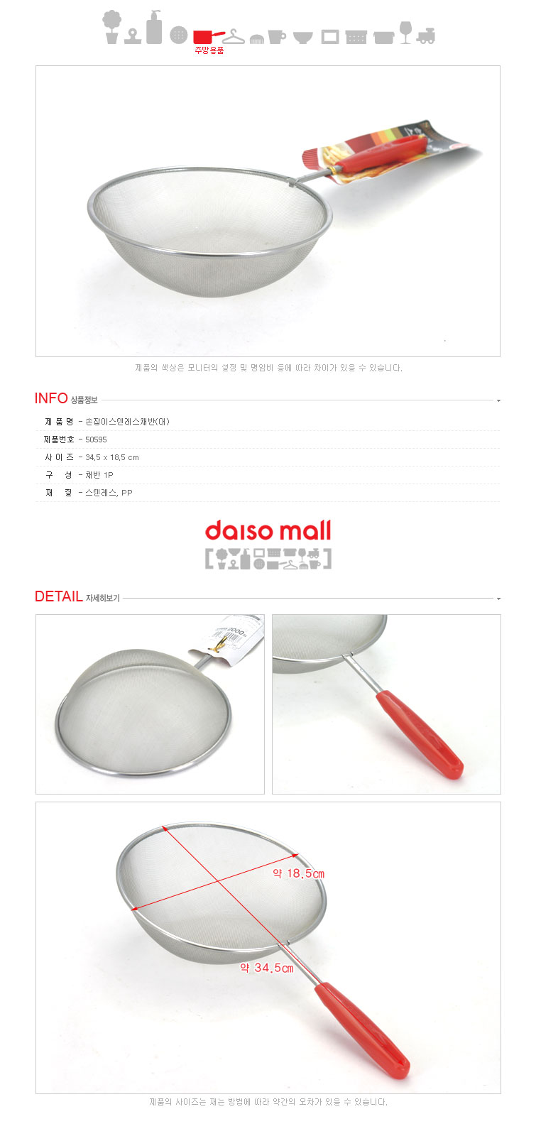Daiso处理不锈钢碗(大)-50595 大创 Colander 滤油网漏网勺JPY带授权招加盟代理