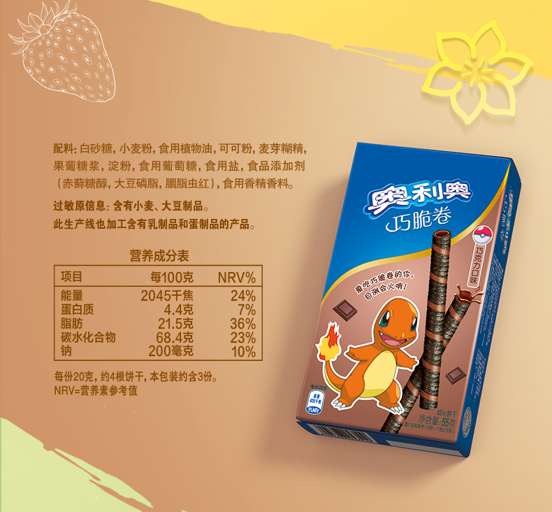 奥利奥(Oreo) 巧脆卷 巧克力味蛋卷威化饼干 下午茶休闲零食 55g (新老包装随机发货)
