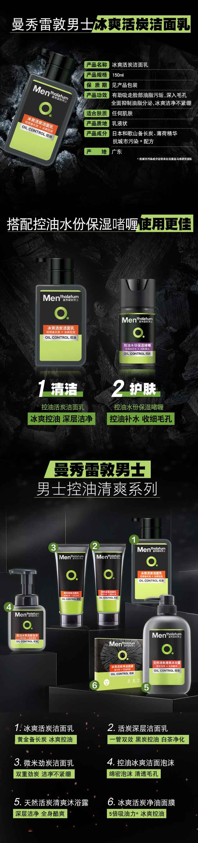 曼秀雷敦冰爽活炭洗面奶男控油150ml 补水保湿深层洁净 收缩毛孔 去黑头去油去角质洁面