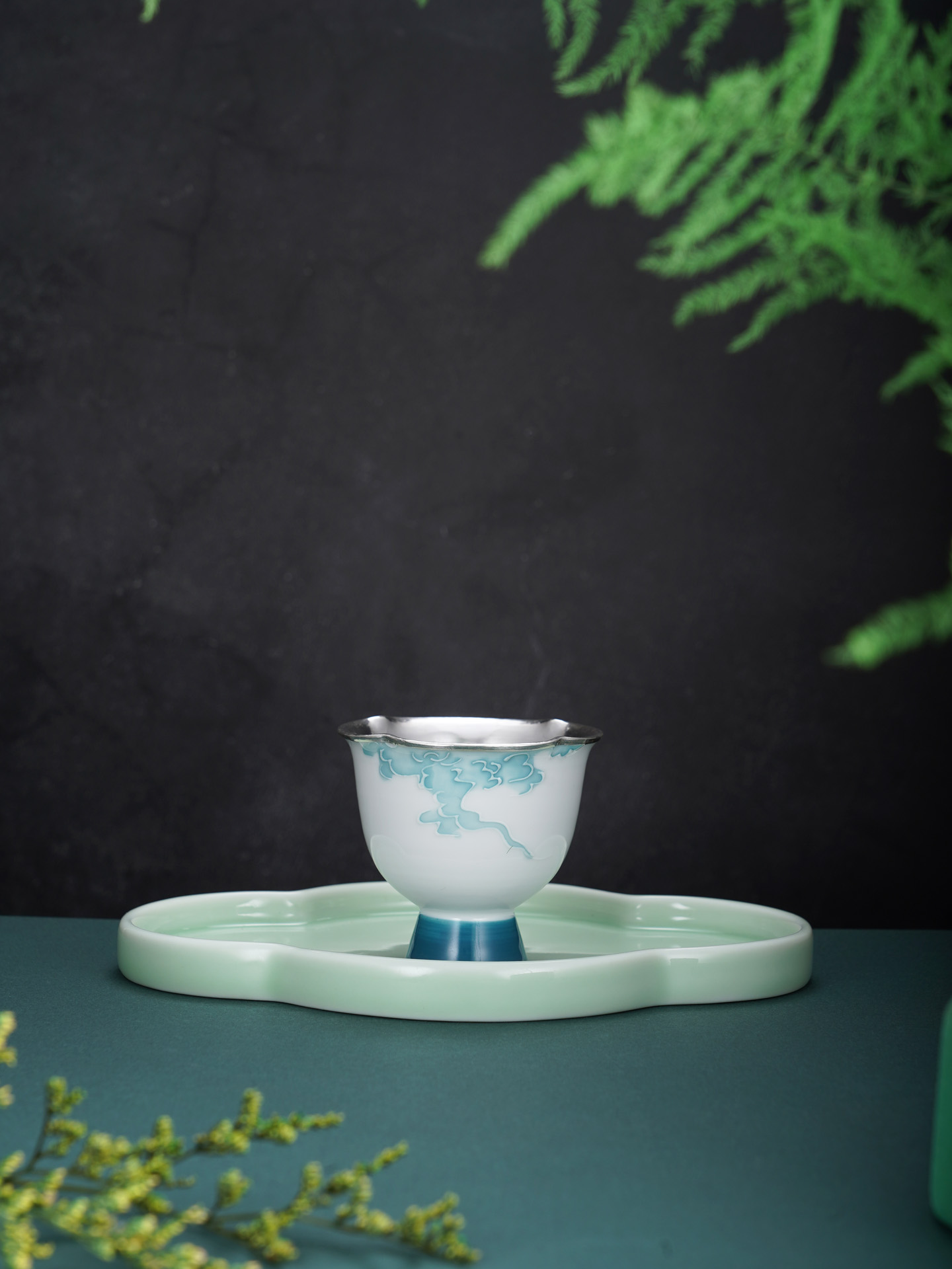 【寓意】:茶杯镶嵌纯银内胆,外壁手绘祥云流转,取“祥云清悦”之名,寓意生活如云,自在舒卷,常伴清欢。