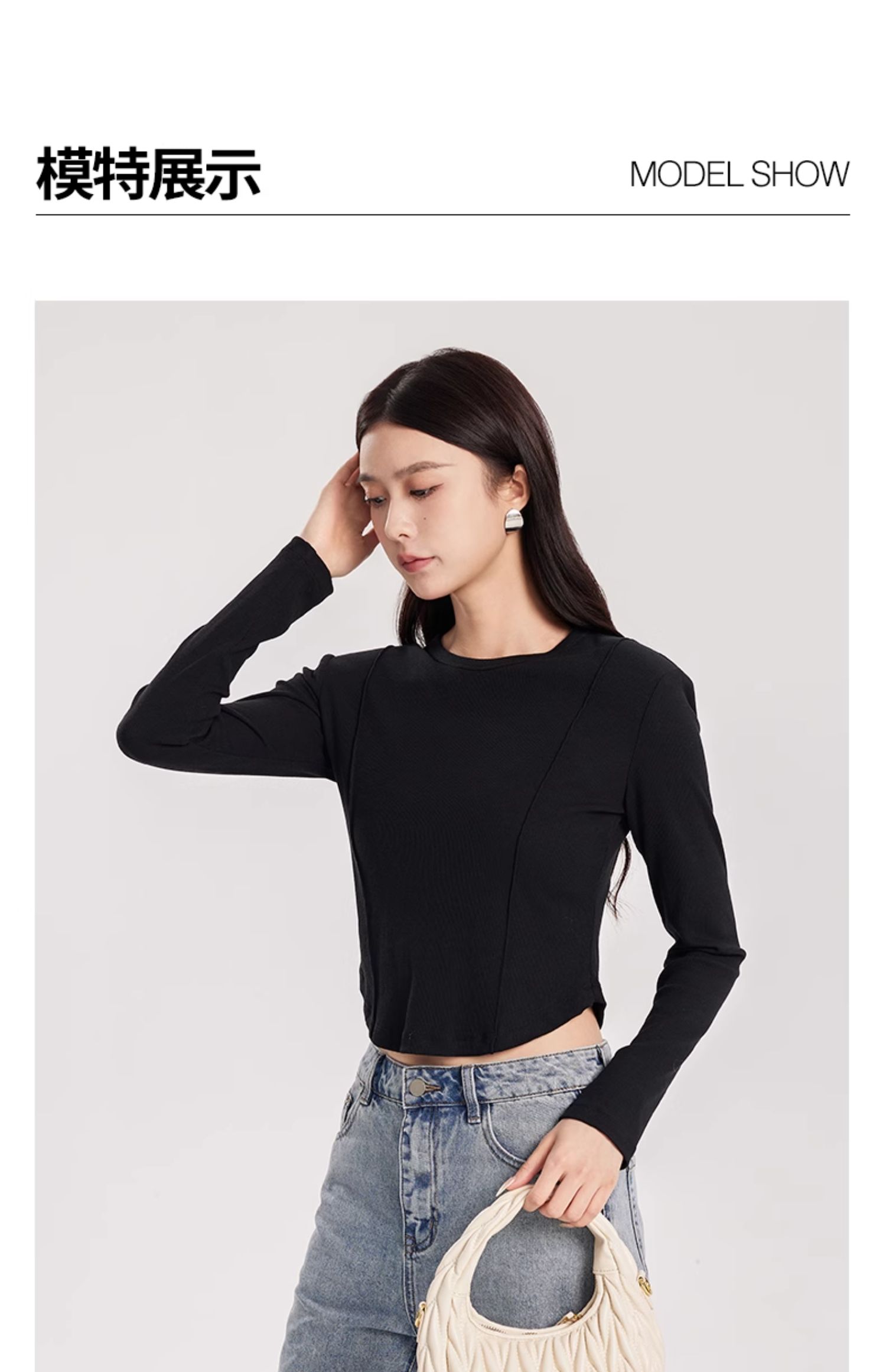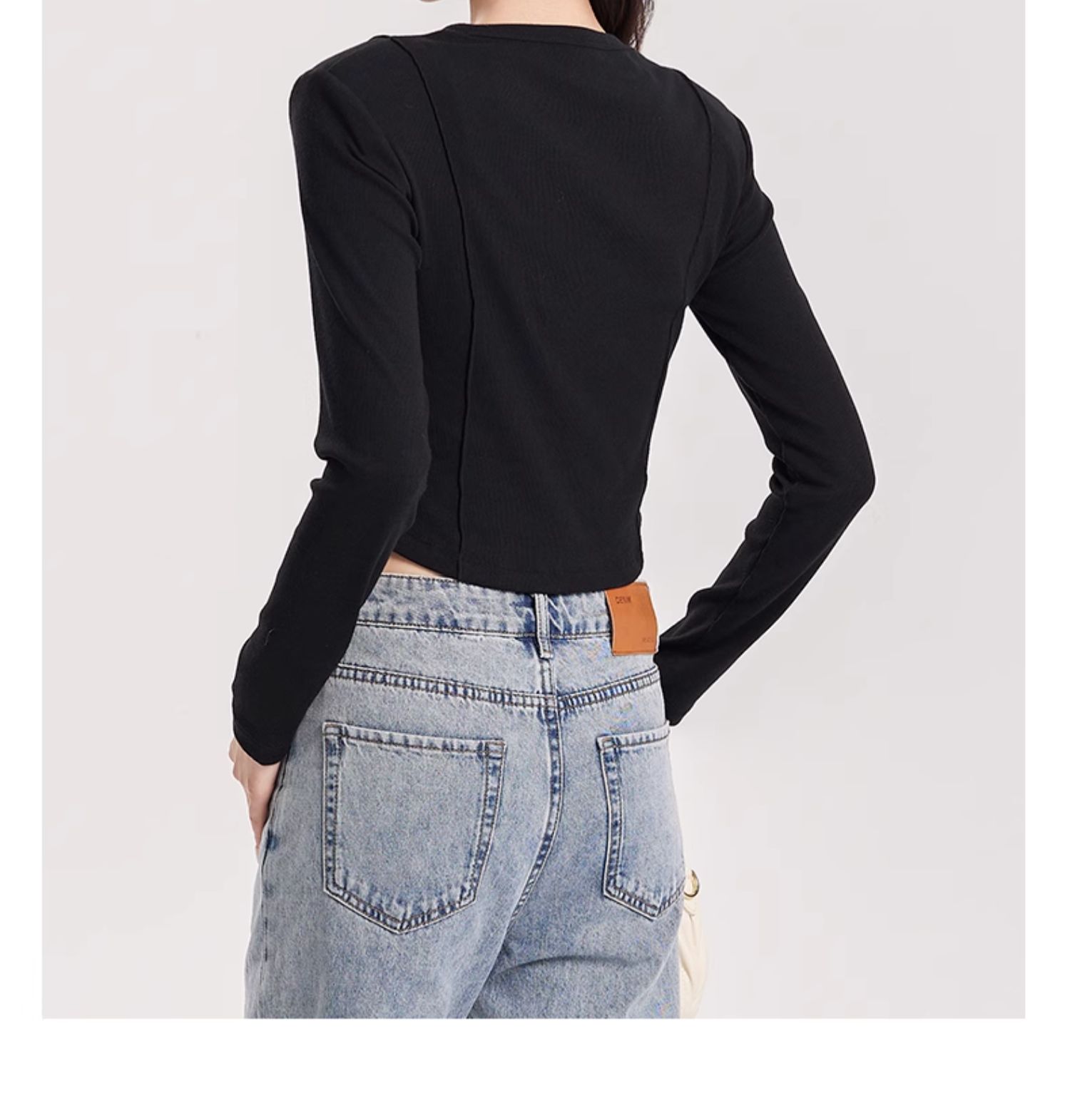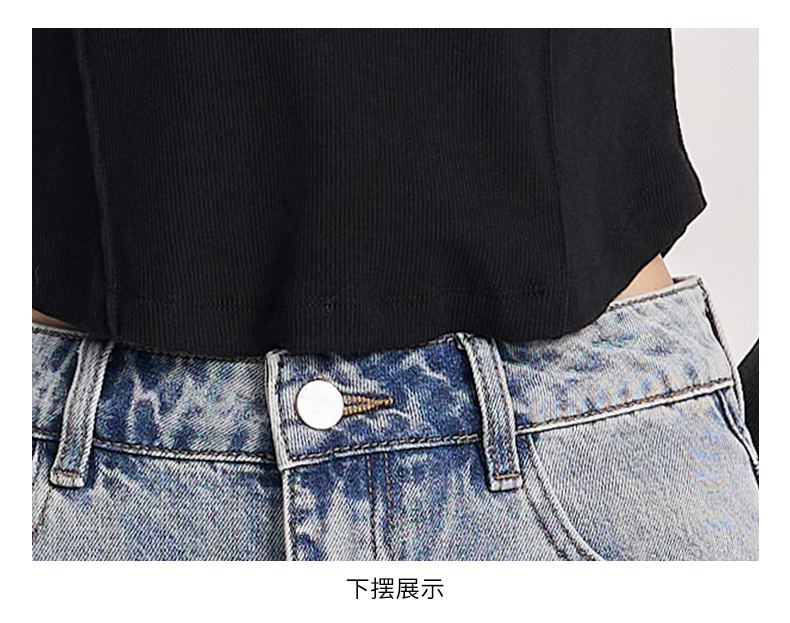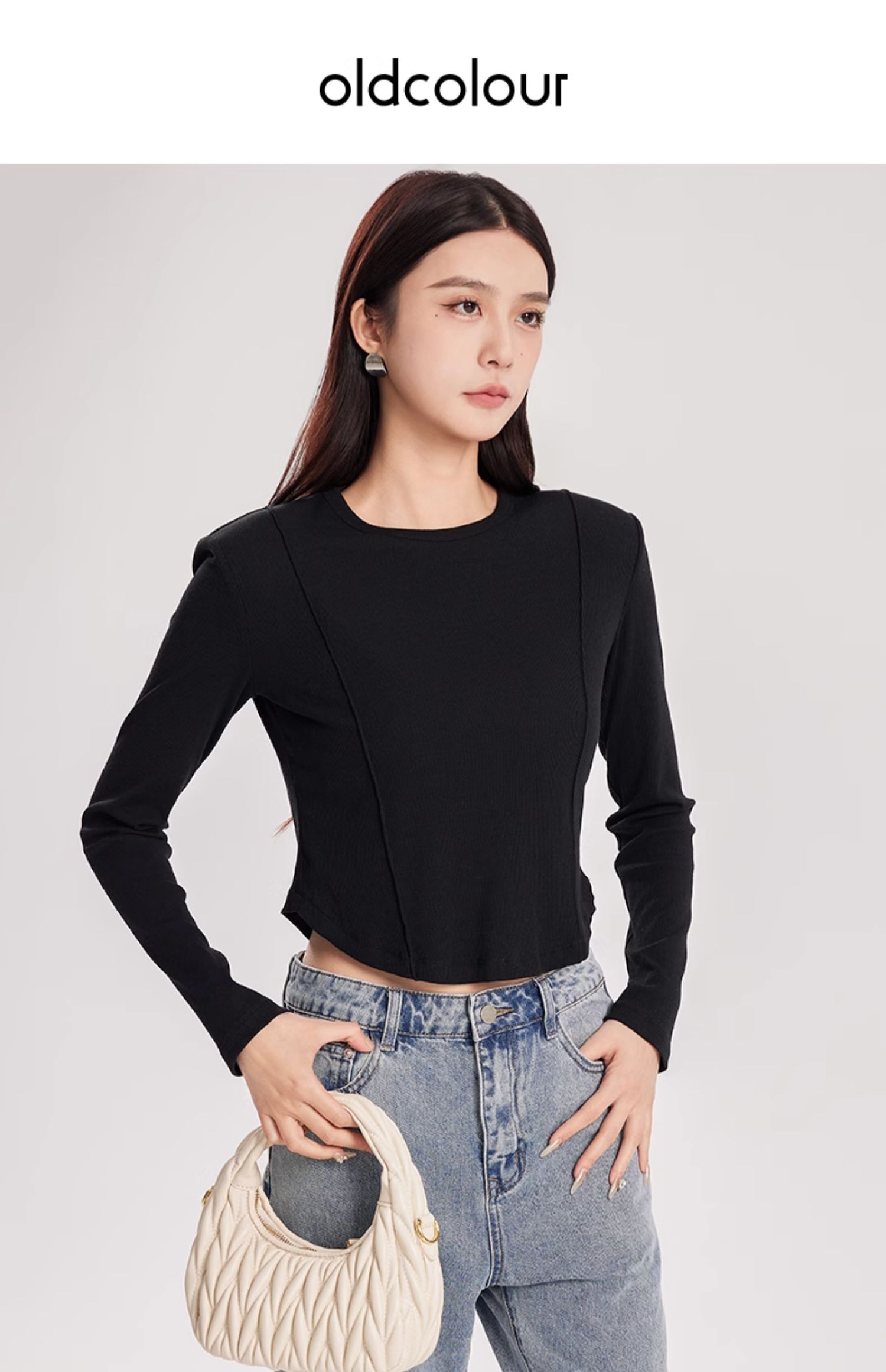 oldcolour春季新款纯色圆领简约休闲百搭短款长袖T恤女Q110203A1