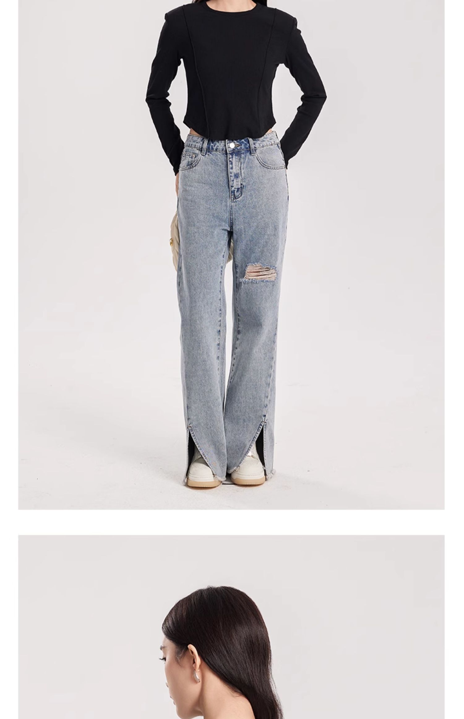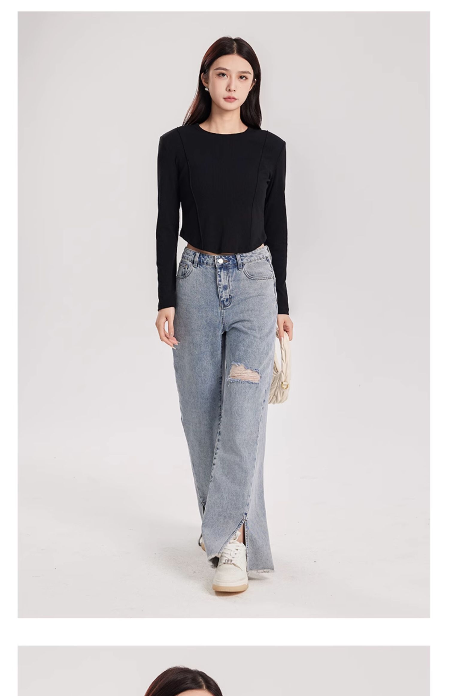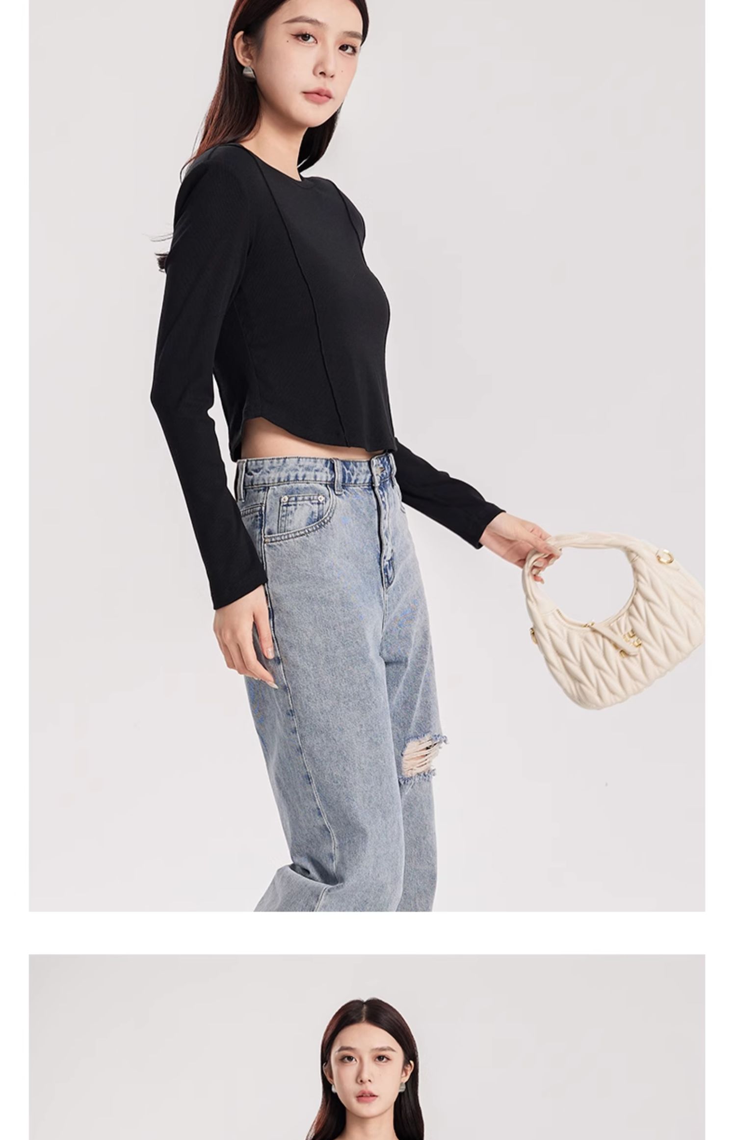 oldcolour春季新款纯色圆领简约休闲百搭短款长袖T恤女Q110203A1