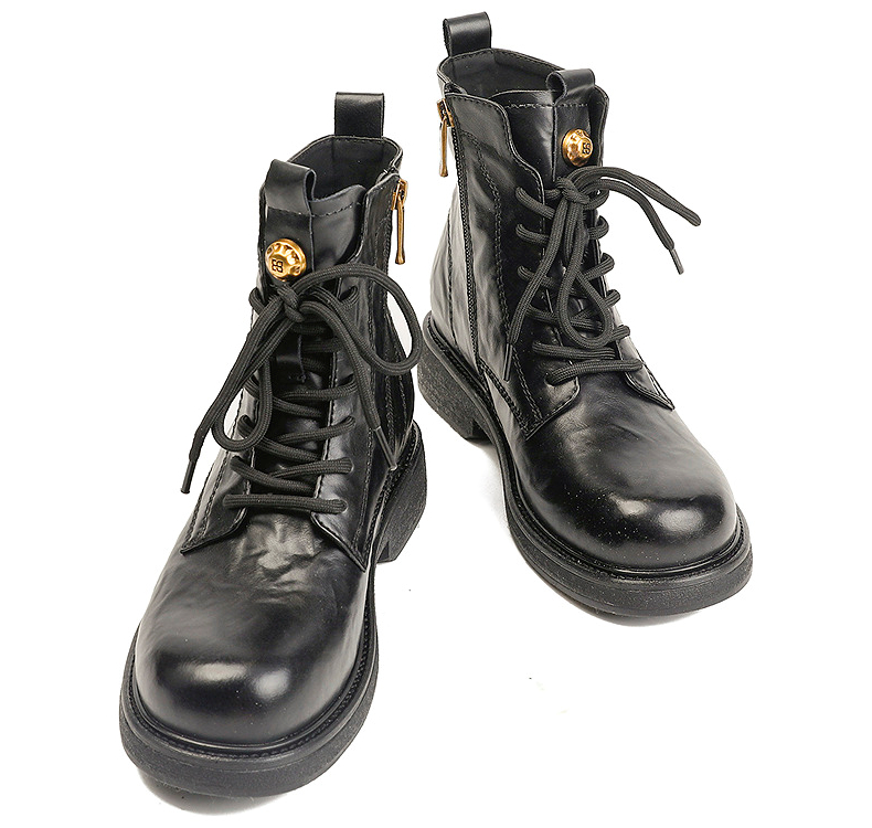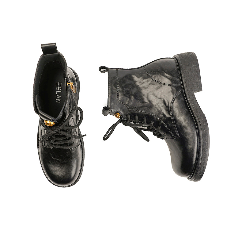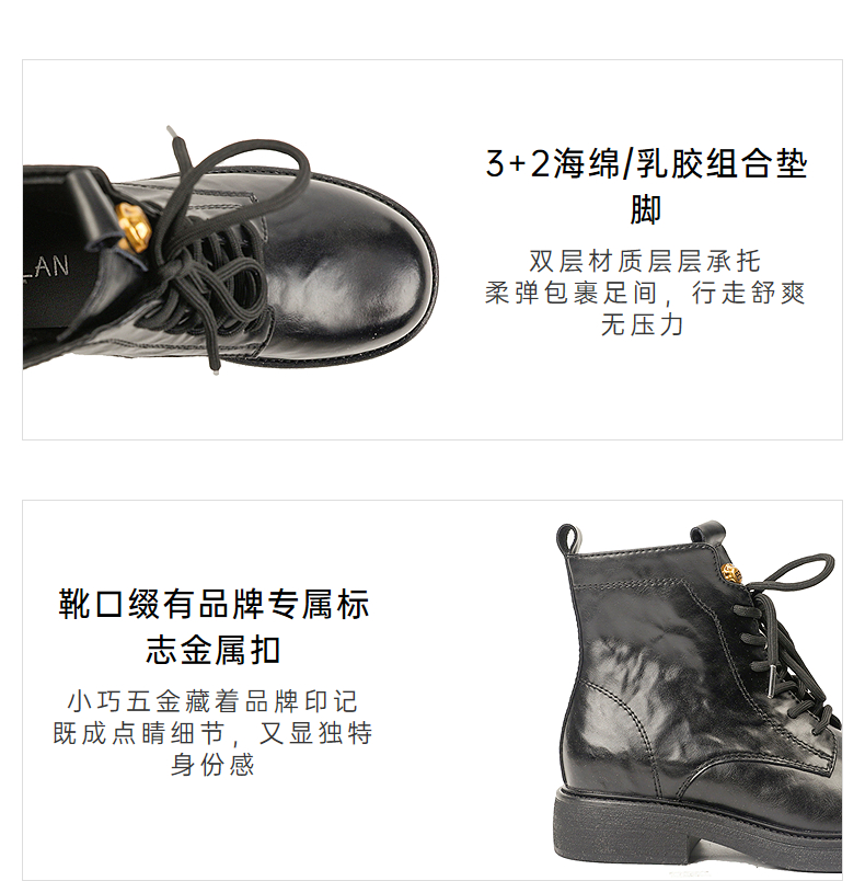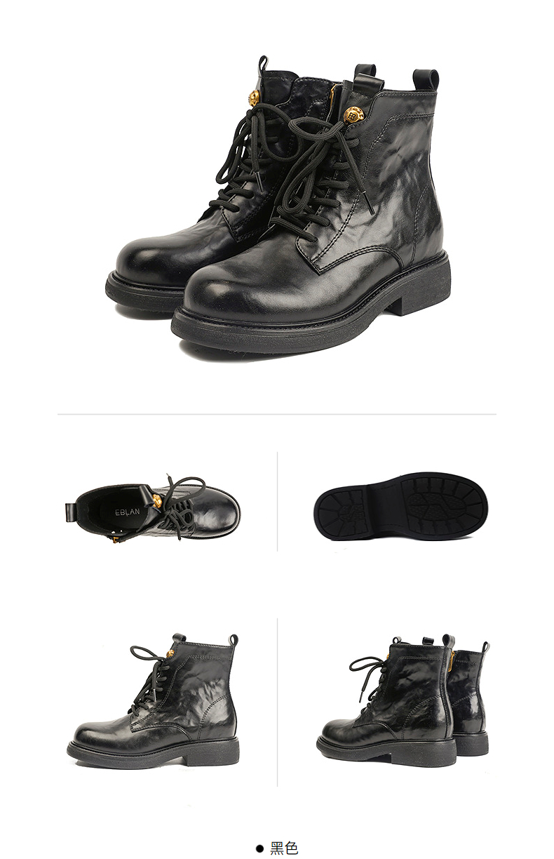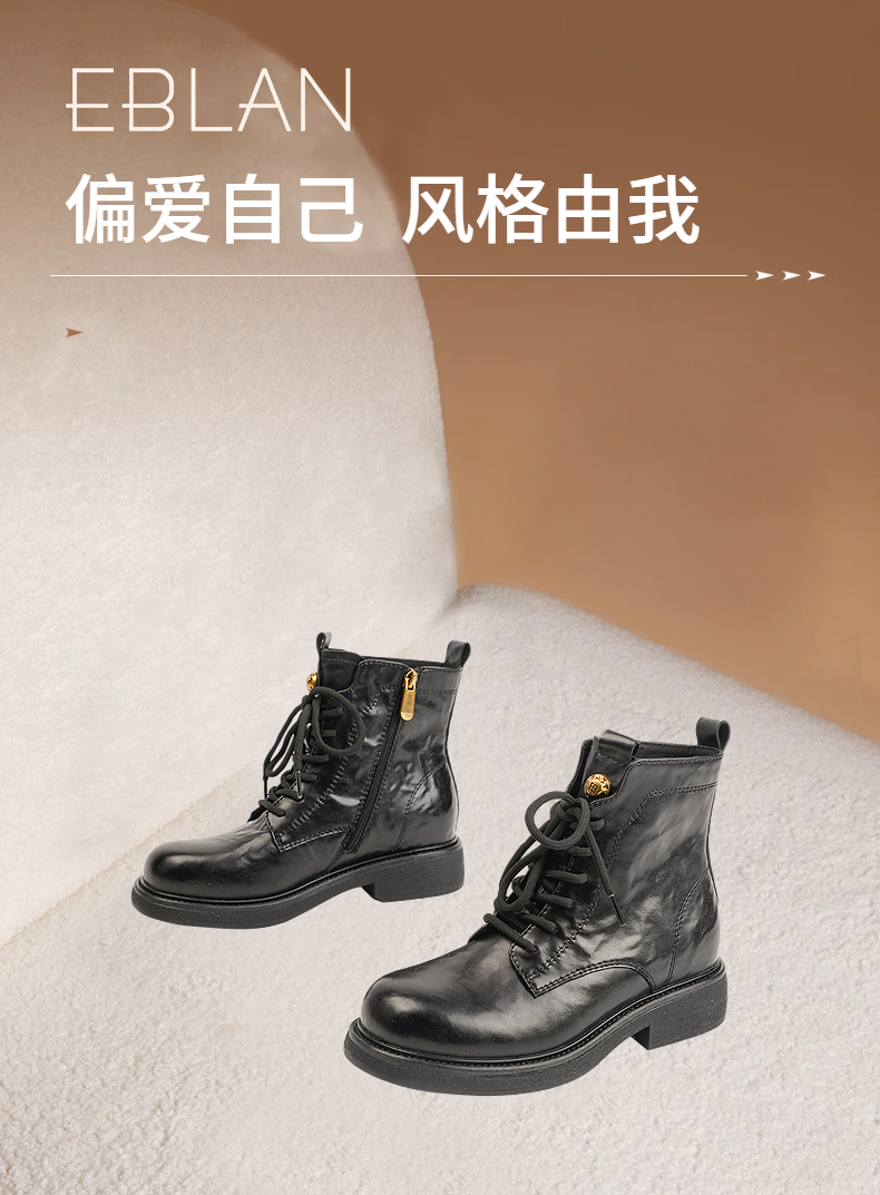 伊伴冬季帅气利落系带马丁靴复古酷感穿搭女鞋B25566320