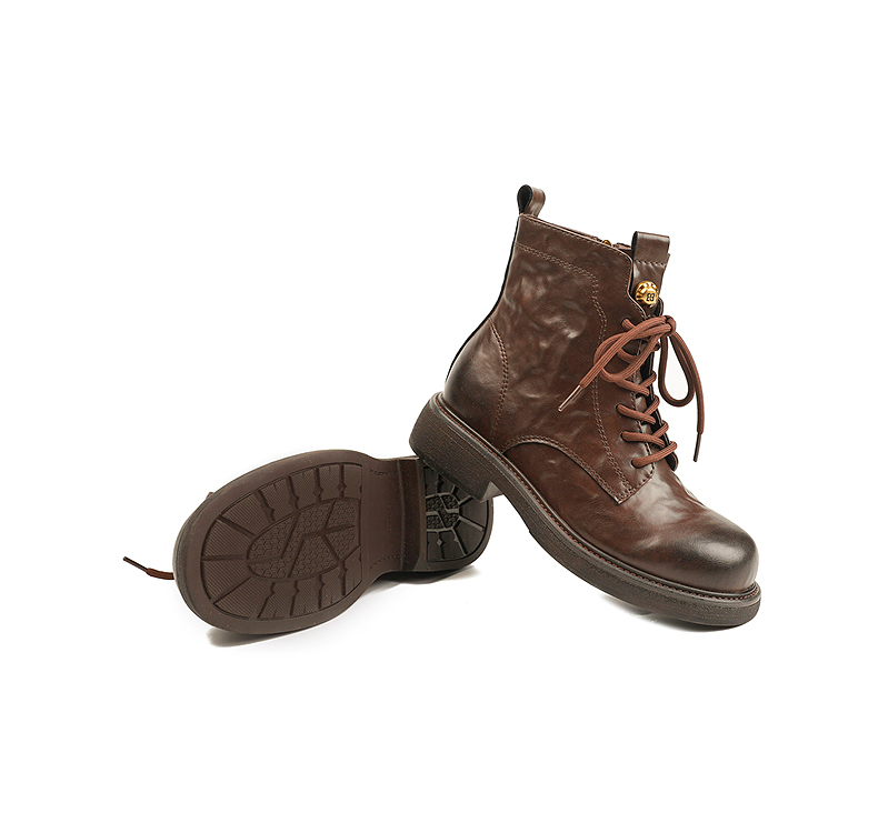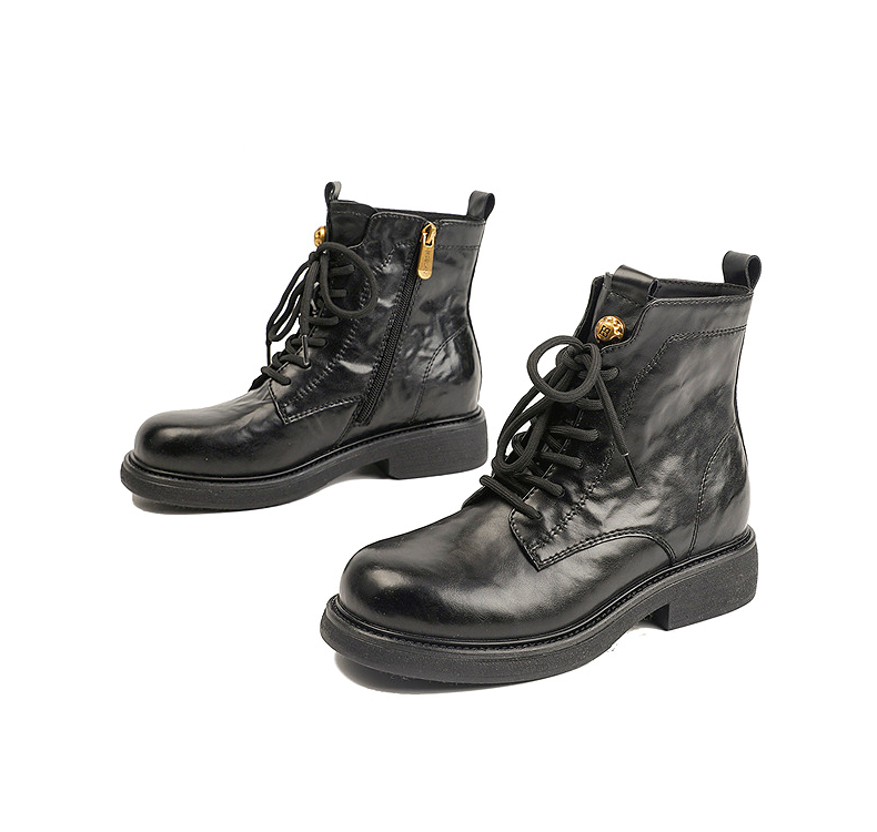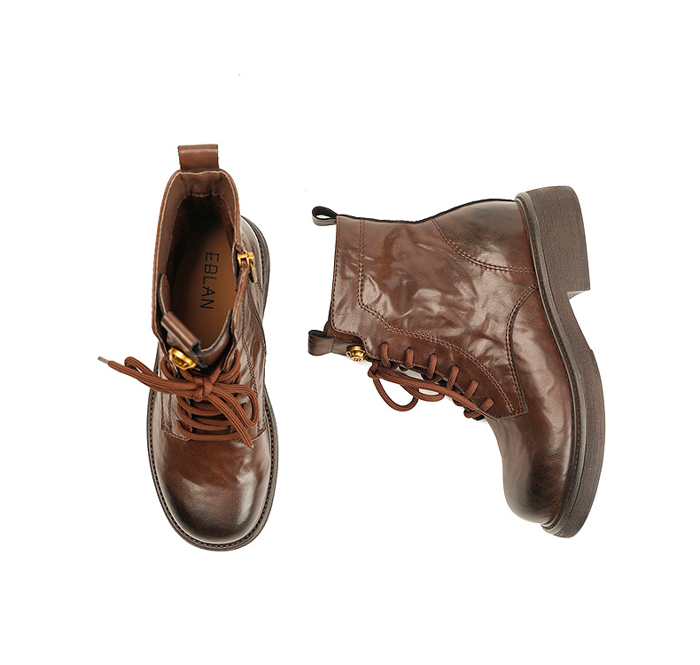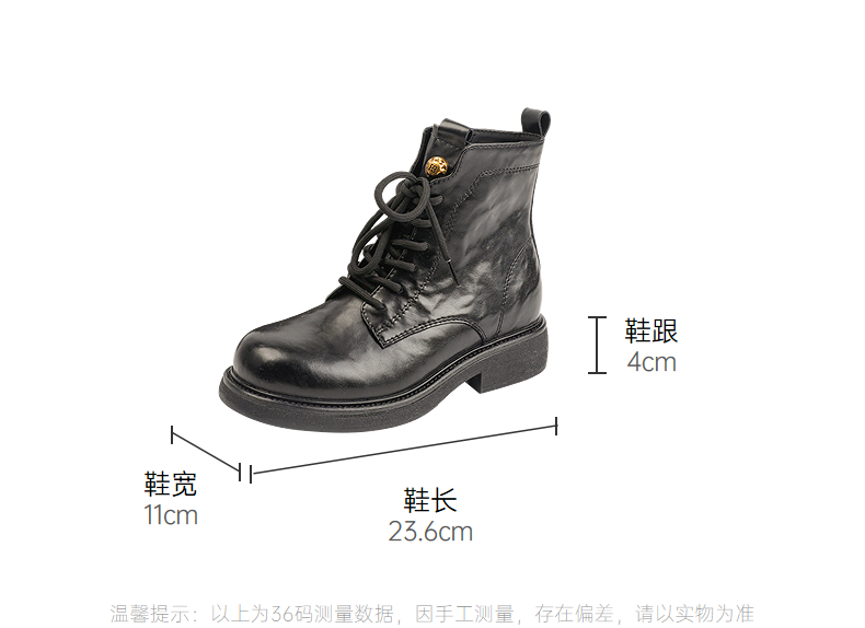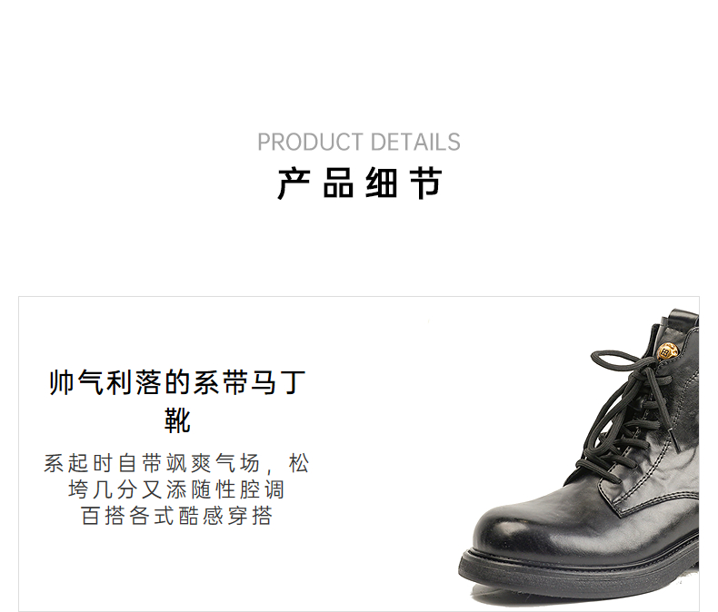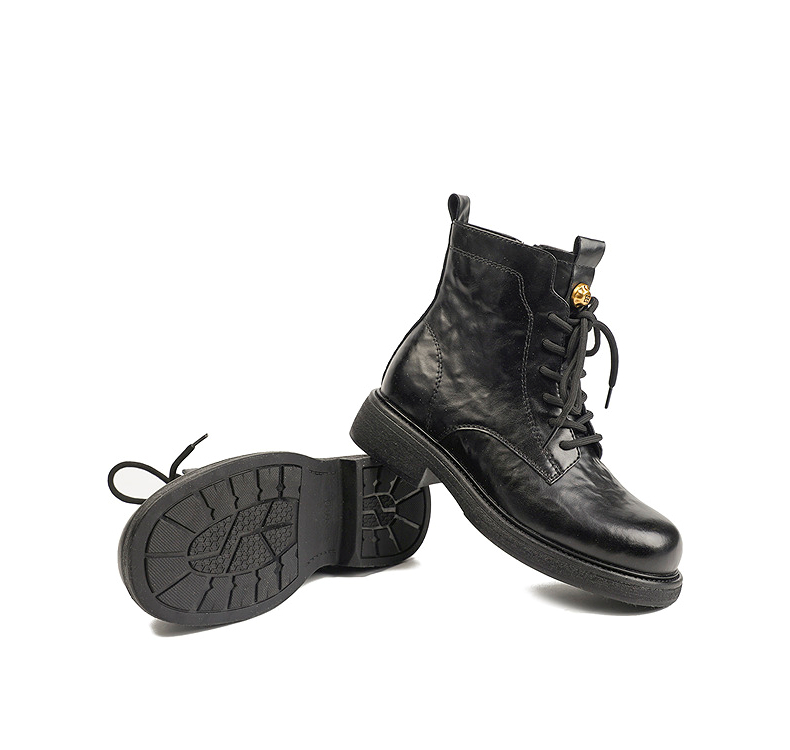 伊伴冬季帅气利落系带马丁靴复古酷感穿搭女鞋B25566320