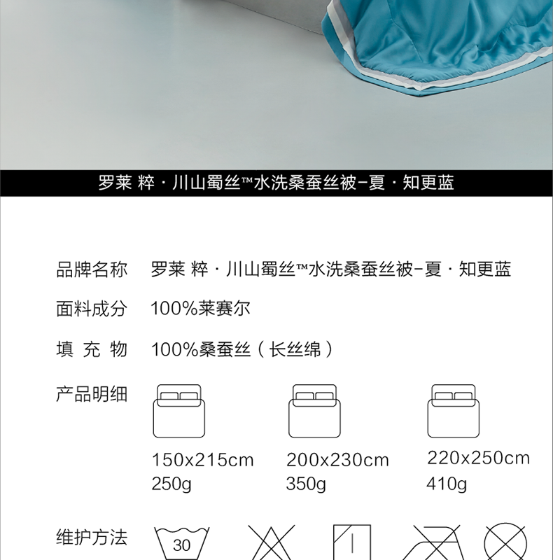 罗莱 粹·川山蜀丝?水洗桑蚕丝被-夏·知更蓝