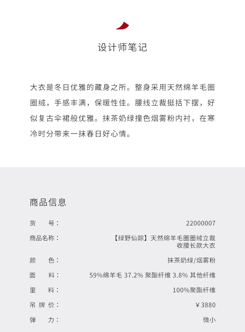 【绿野仙踪】天然绵羊毛圈圈绒立裁收腰长款大衣/22000007