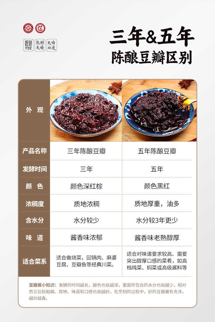 5、陈酿豆瓣酱2瓶组合(3年豆瓣1瓶+5年豆瓣1瓶);