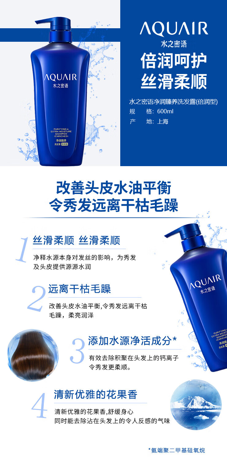 水之密语净润臻养洗发水倍润型600ml/112654 远离干枯毛躁
