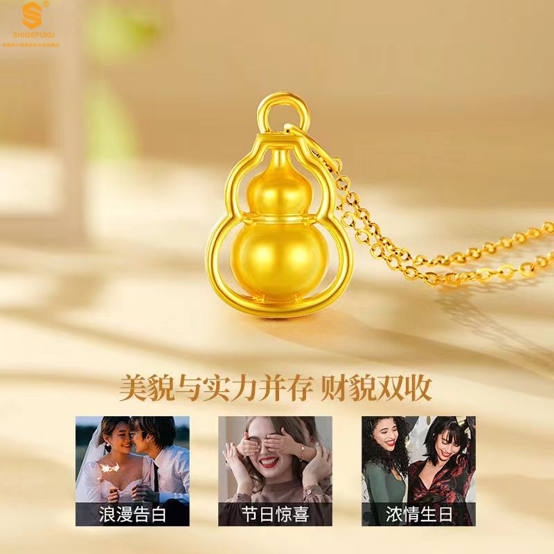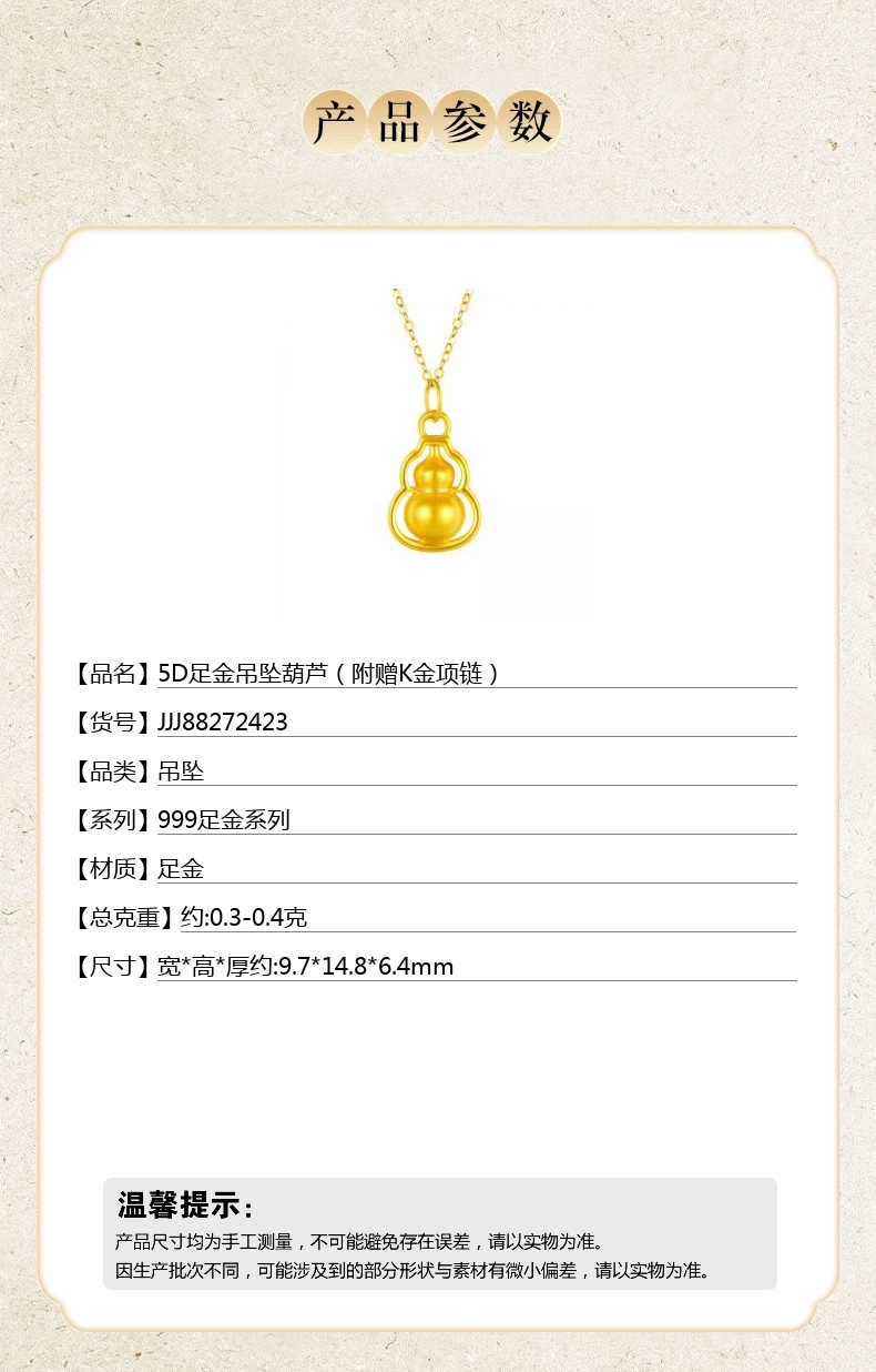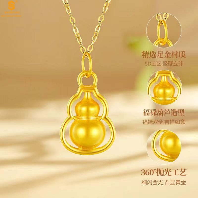 【品名】5D足金吊坠葫芦(附赠K金项链)