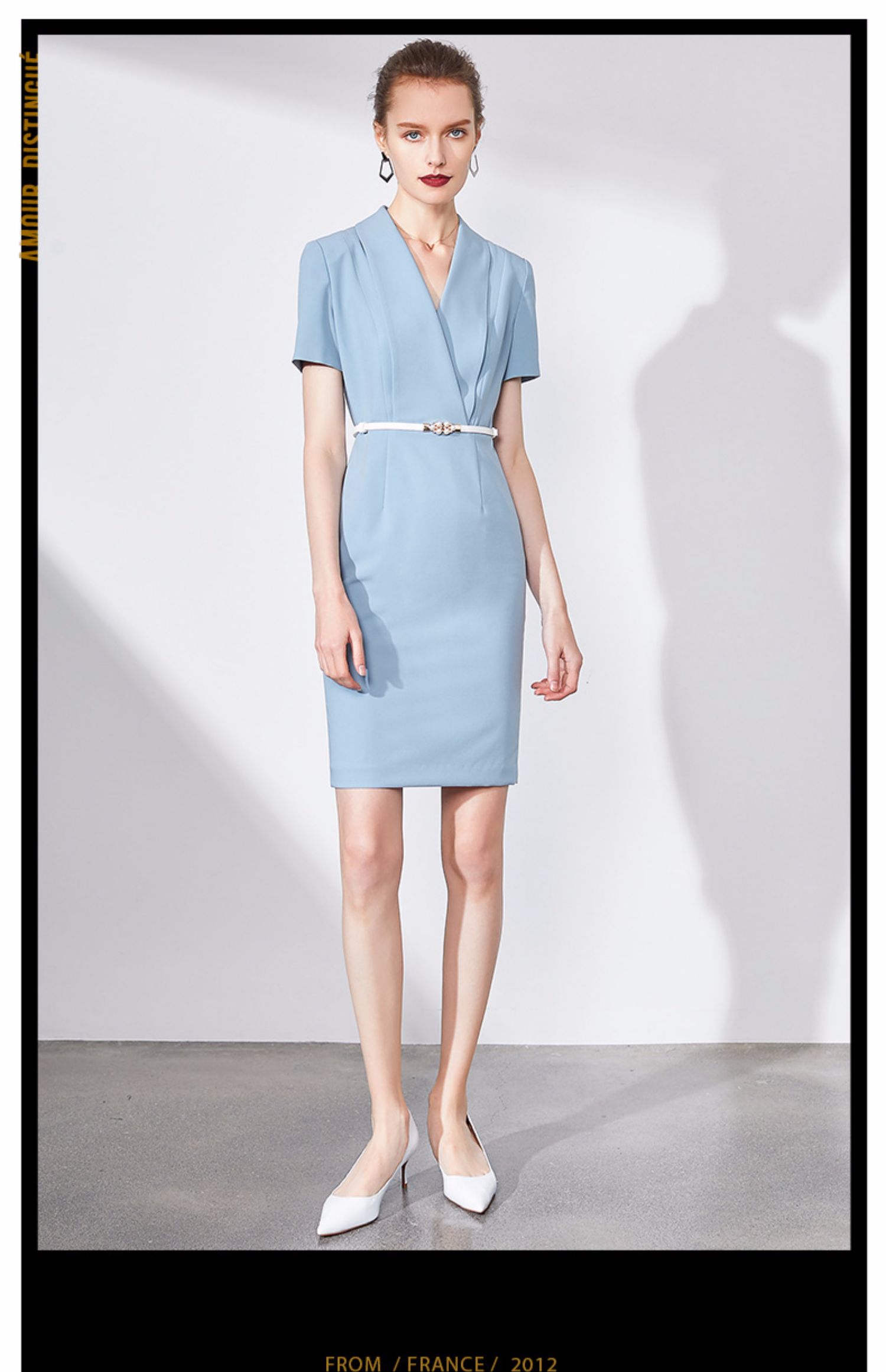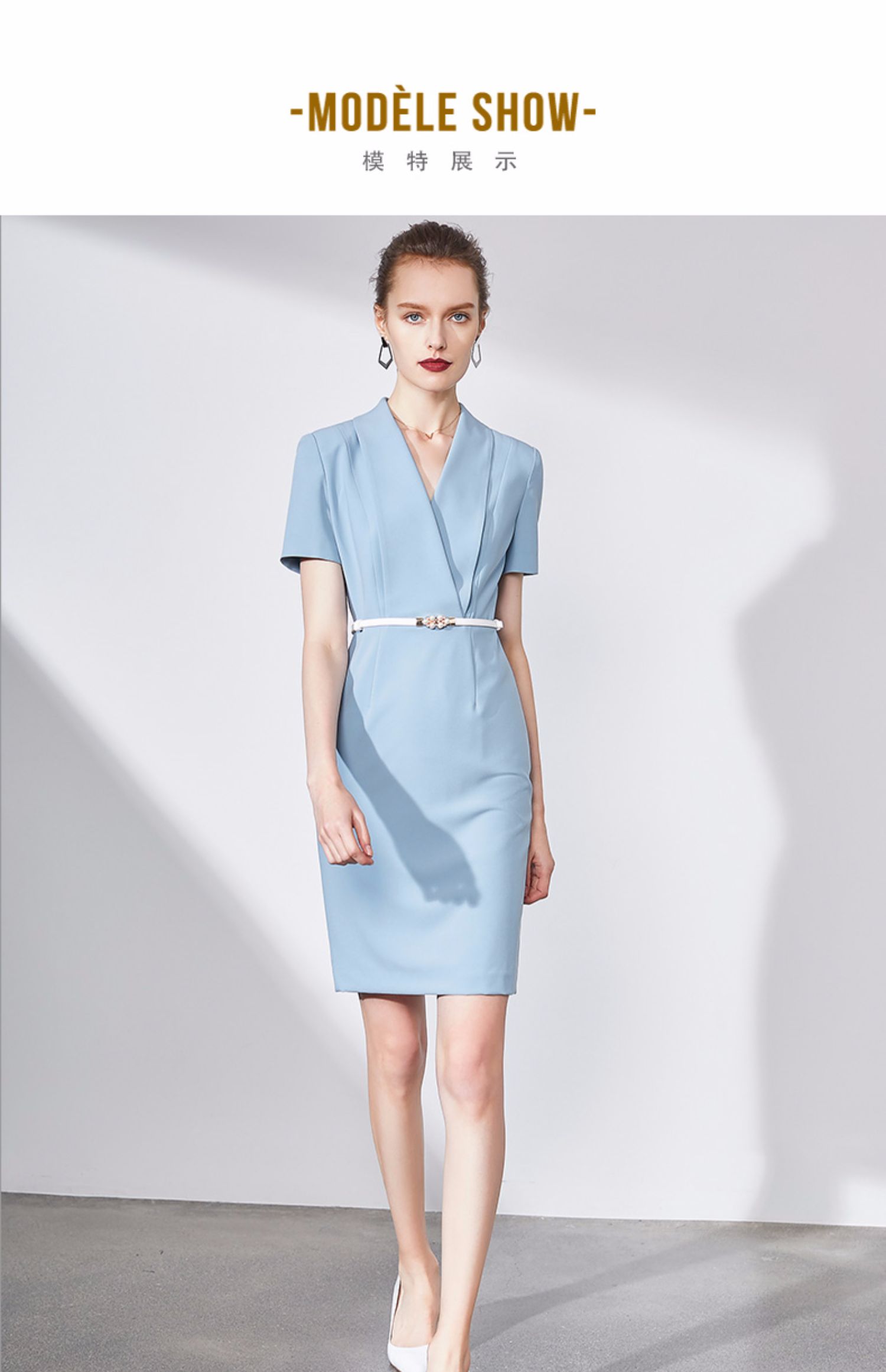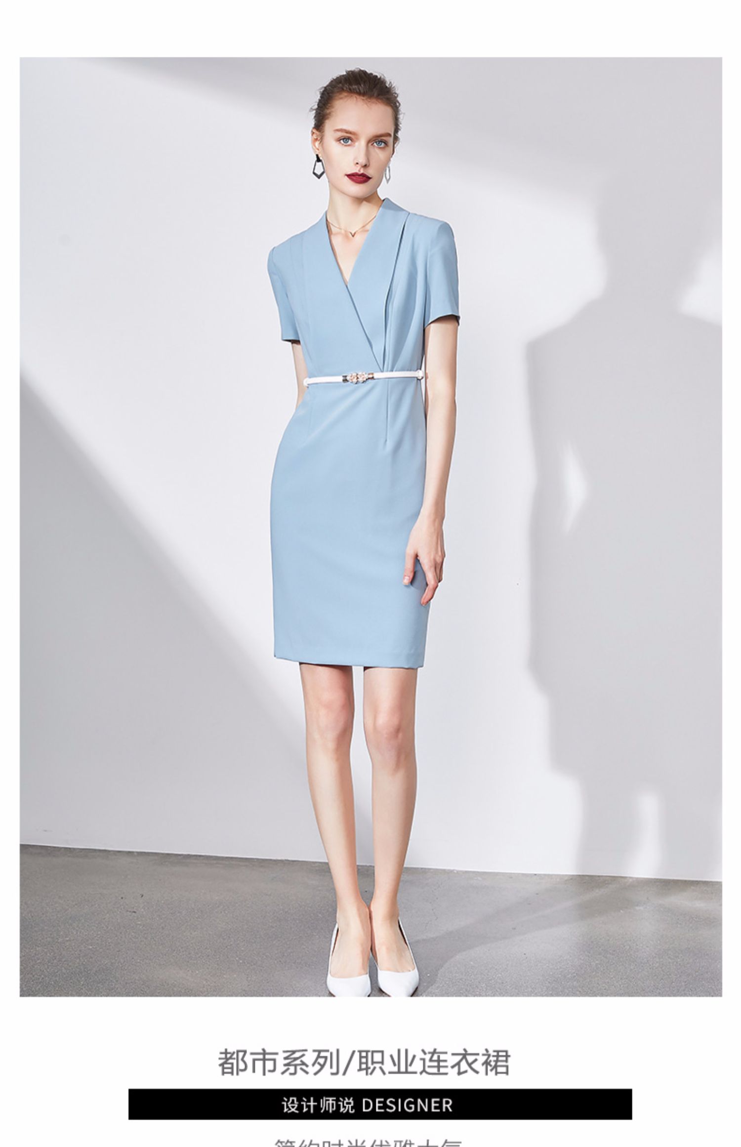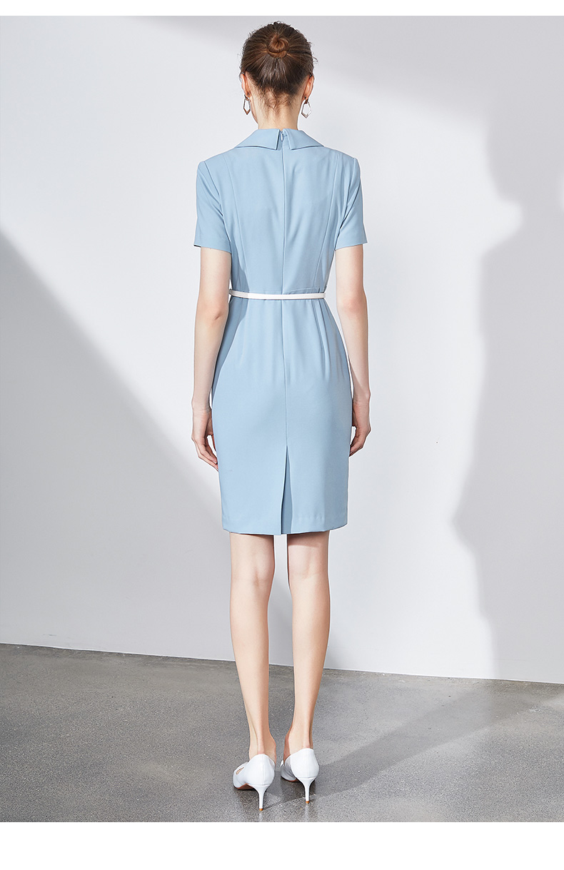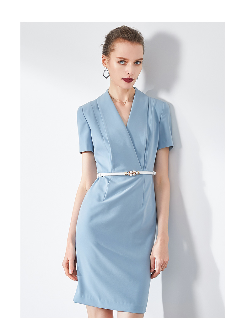 IWY/蓝色连衣裙职业裙办公室西装套大气气质款洋气商务装求职面试Q586