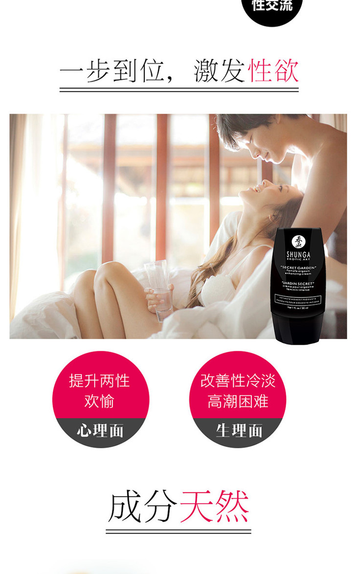 现货!!!加拿大SHUNGA春画 私密花园凝胶霜女用液乳霜成人用情趣30ml