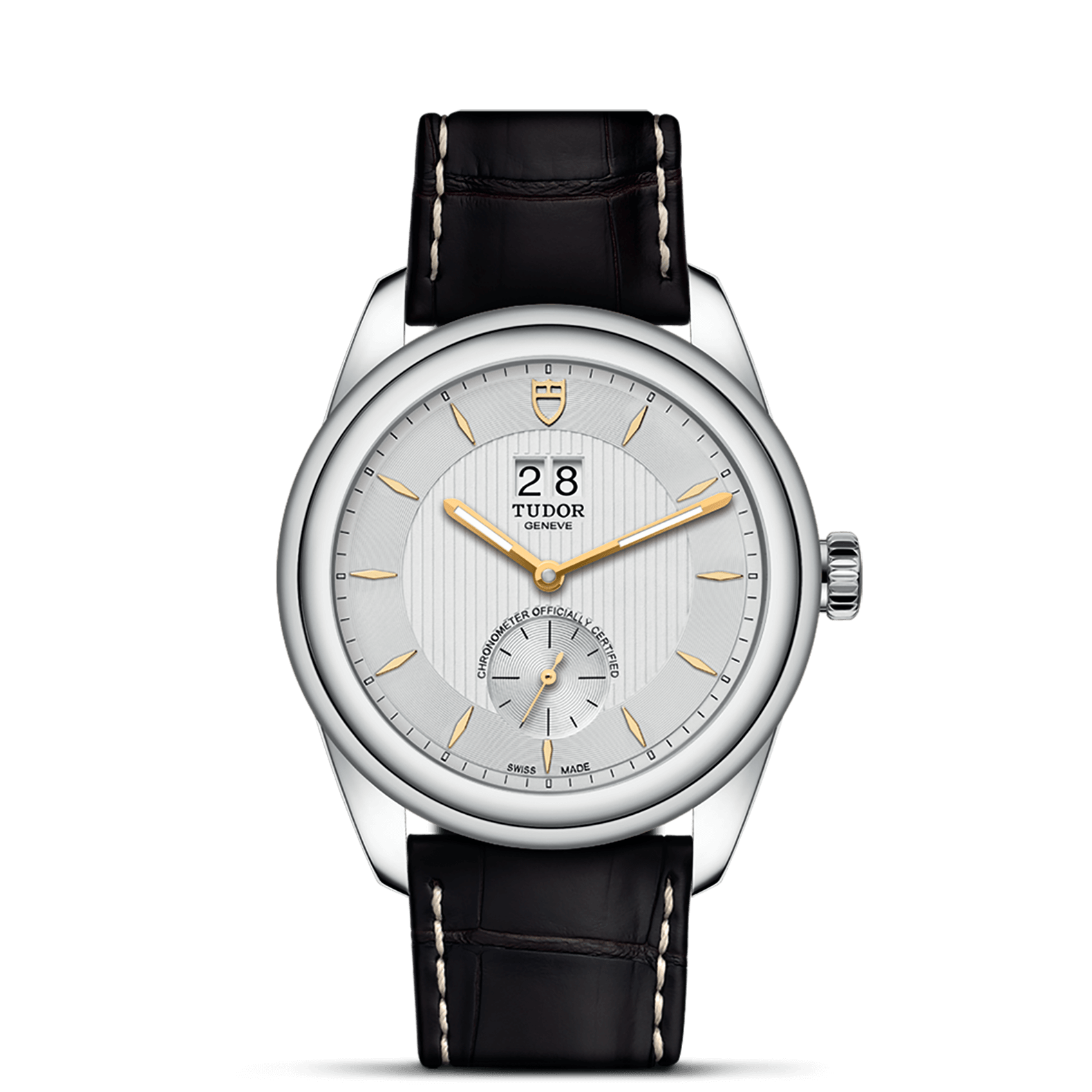 哑光棕色鳄鱼皮表带,配摺扣及精钢保险扣