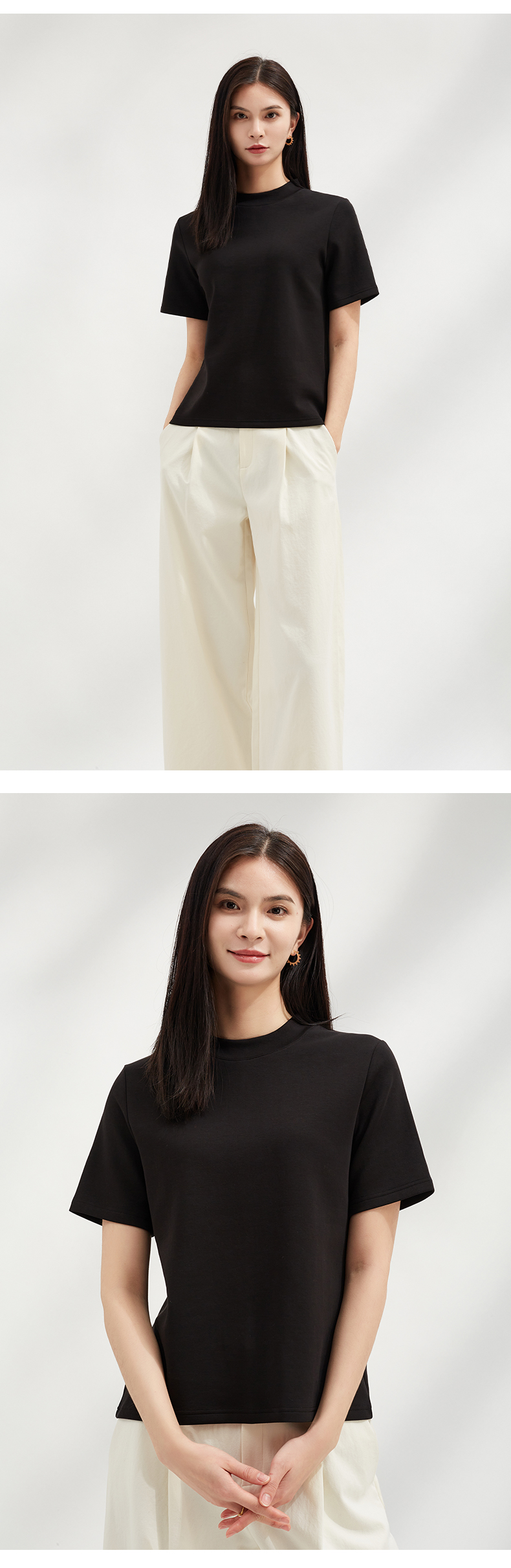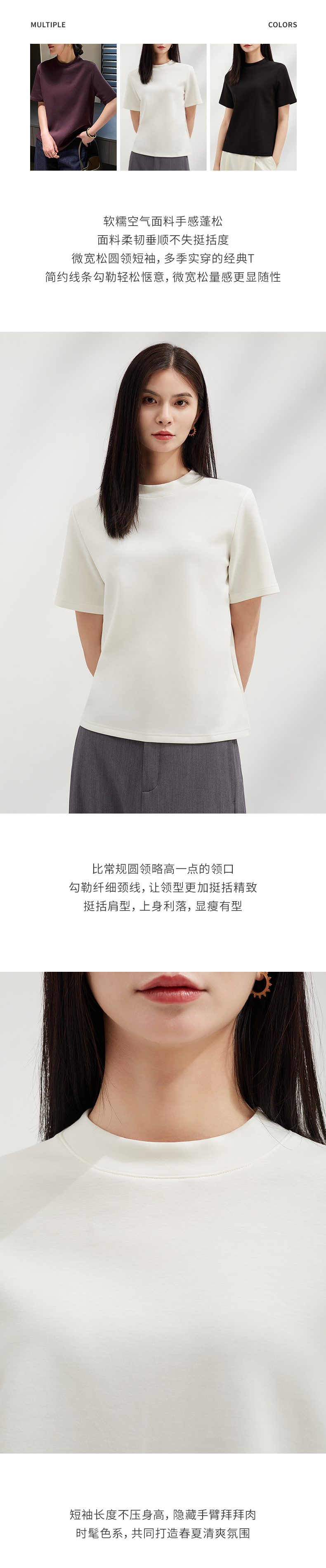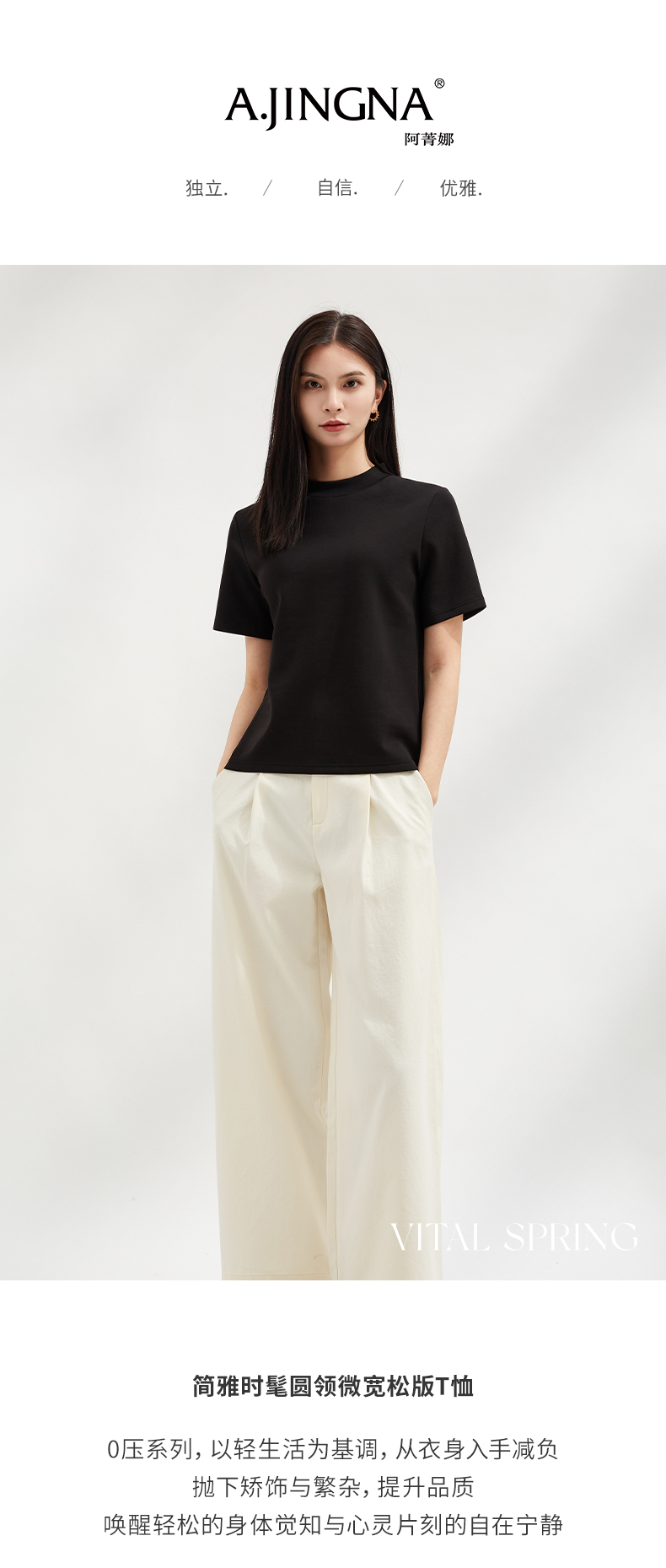 【0压系列】阿菁娜简雅时髦圆领微宽松版T恤F30C302015