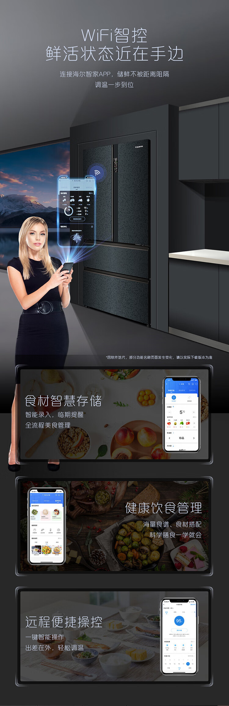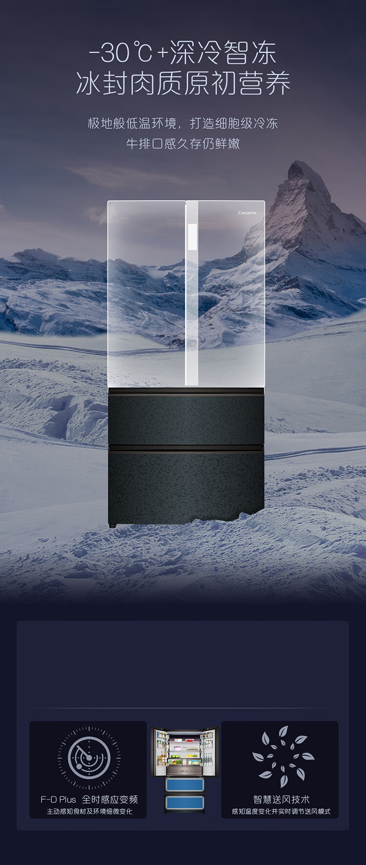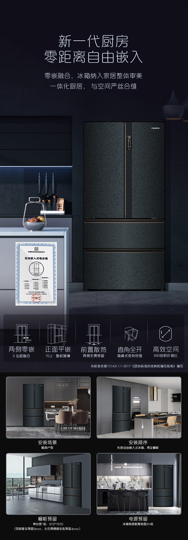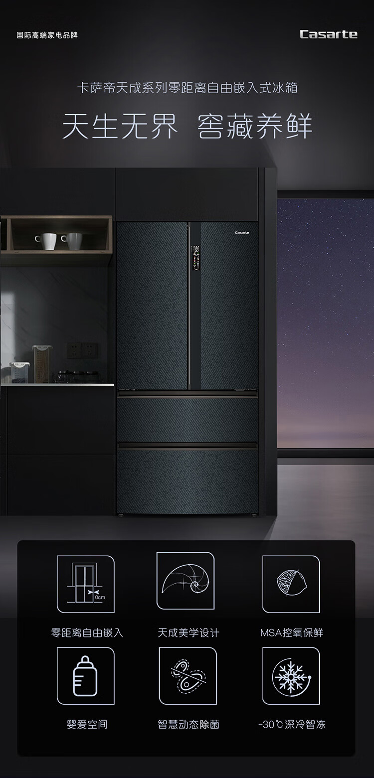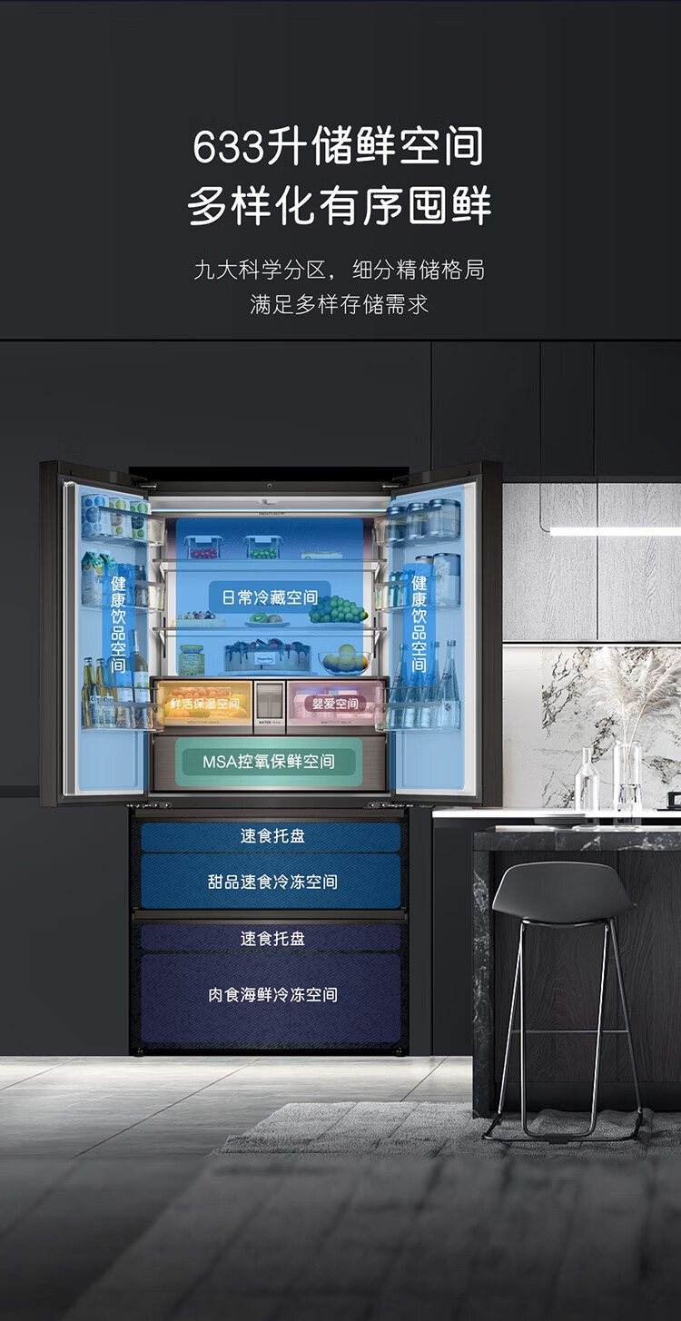 卡萨帝(Casarte)633升大容量零嵌冰箱多门一级能效双变频风冷无霜智能WIFI自动制冰控氧保鲜家用电冰箱 BCD-633WLCFDA4ARU1幻影黛