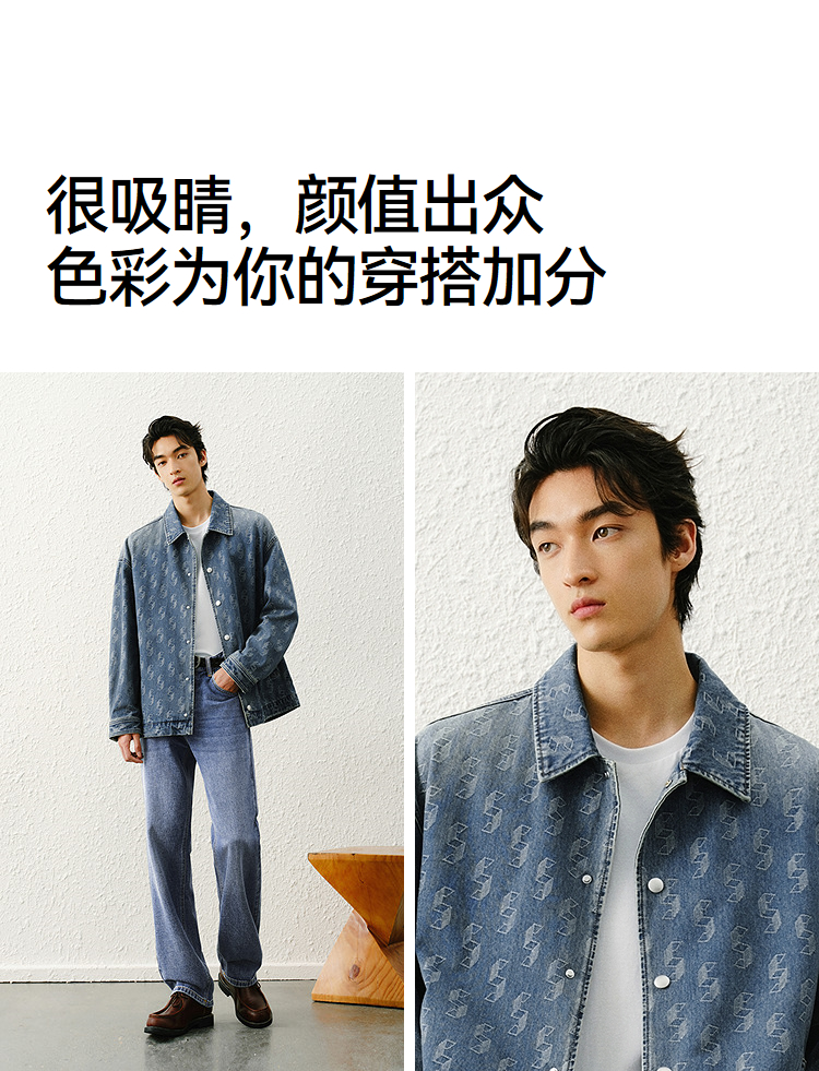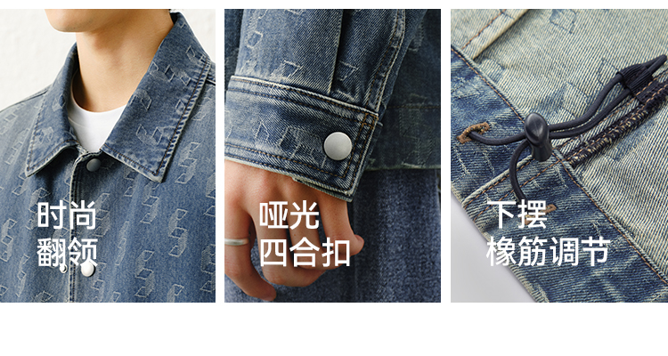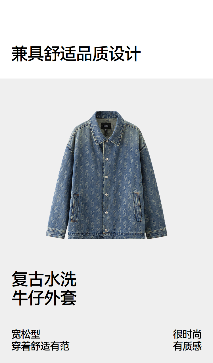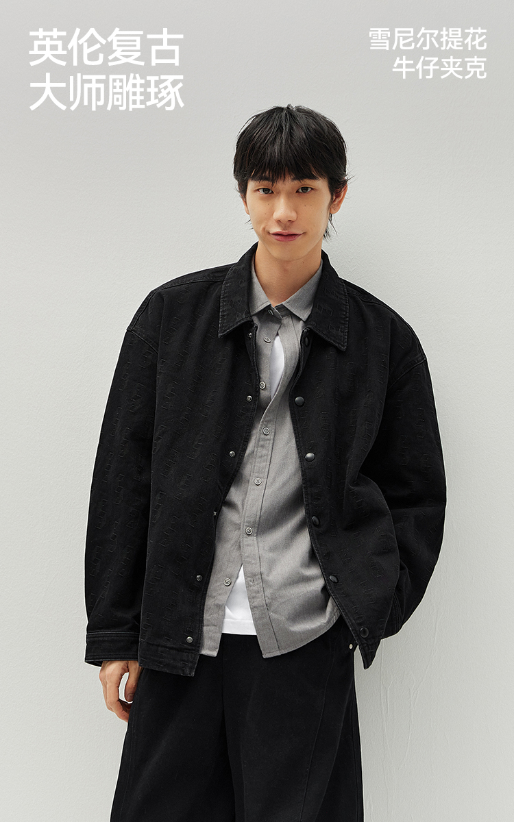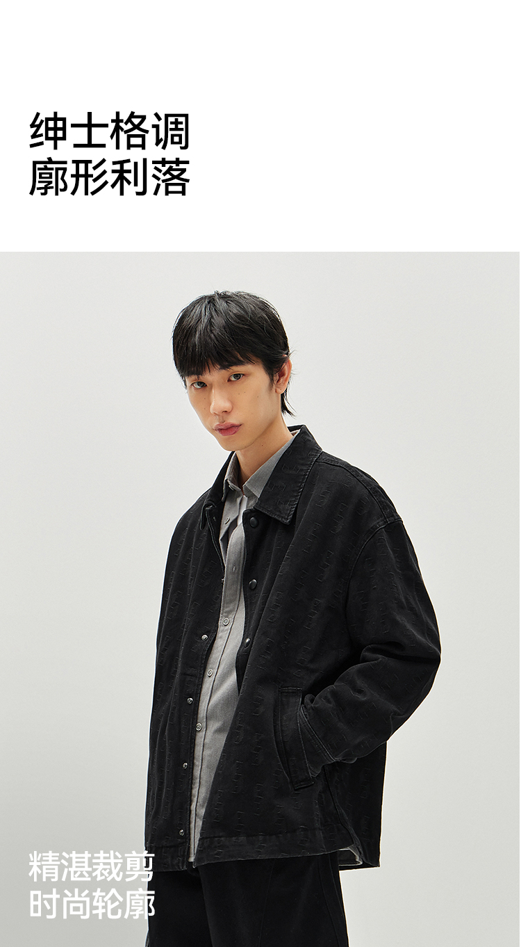 森马夹克男春装提花肌理牛仔外套复古水洗宽松休闲服上衣潮流个性
