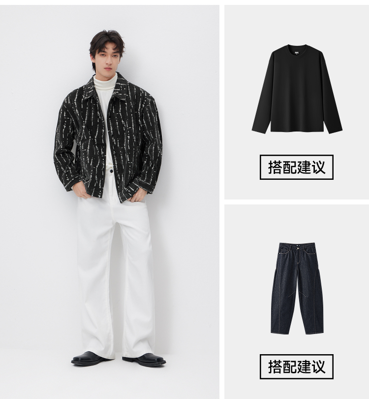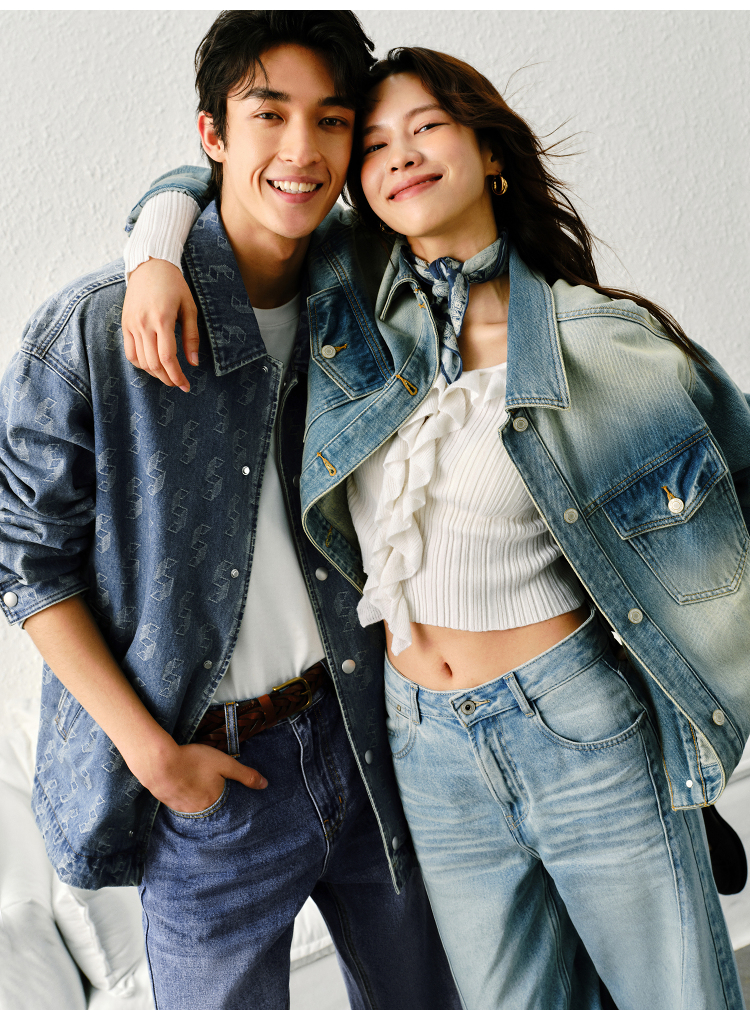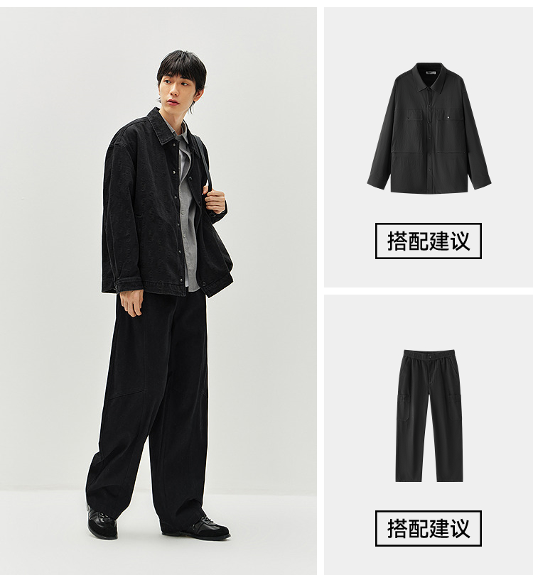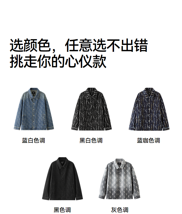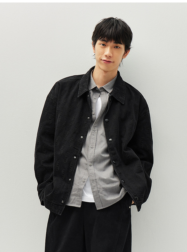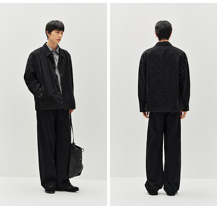 森马夹克男春装提花肌理牛仔外套复古水洗宽松休闲服上衣潮流个性
