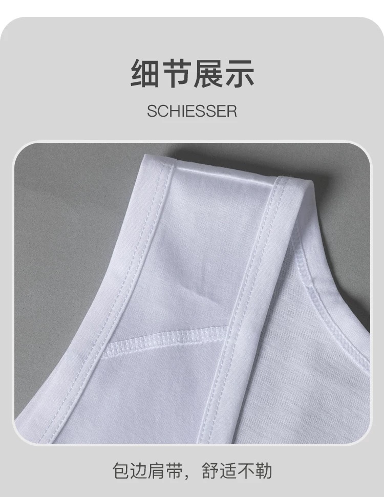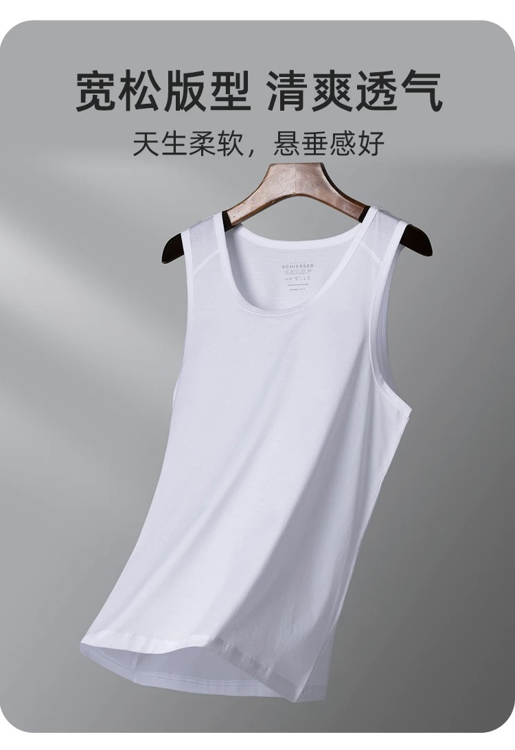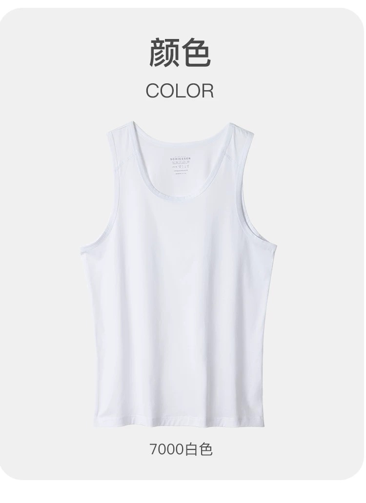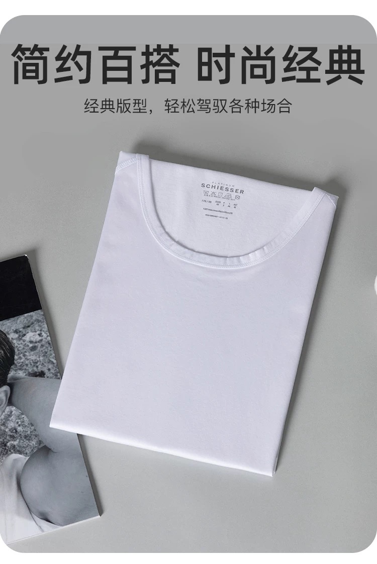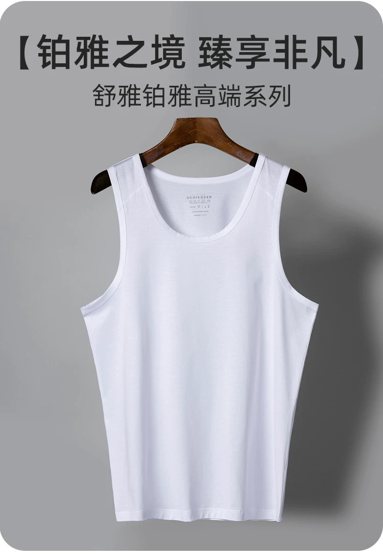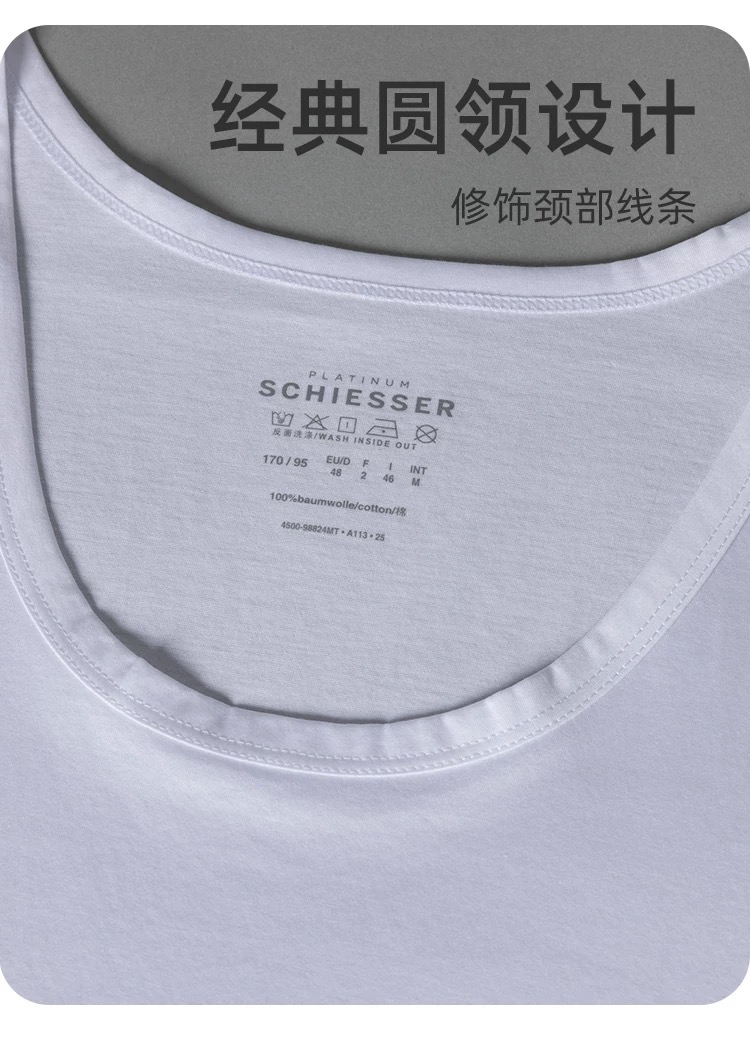 SCHIESSER德国舒雅高端铂雅男士100%埃及丝光棉棉100S圆领背心95/24845V