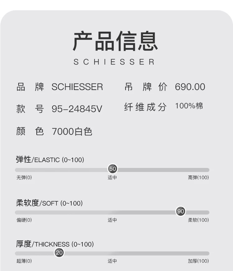 - 来自德国的SCHIESSER舒雅,专注做内衣一百四十余年,不遗余力的材料创新,因材而异的专业剪裁,健康环保的加工技术以及充满文化关注的时尚主题,做你认识之外的舒适内衣。