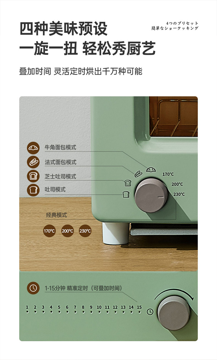 aotime/澳特美电烤箱家用小型迷你网红复古多功能旋钮微蒸烤箱/智能触屏烤箱