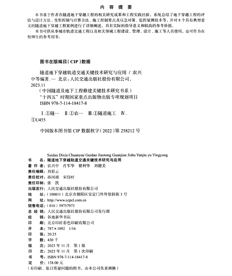 书名:隧道地下穿越轨道交通关键技术研究与应用
