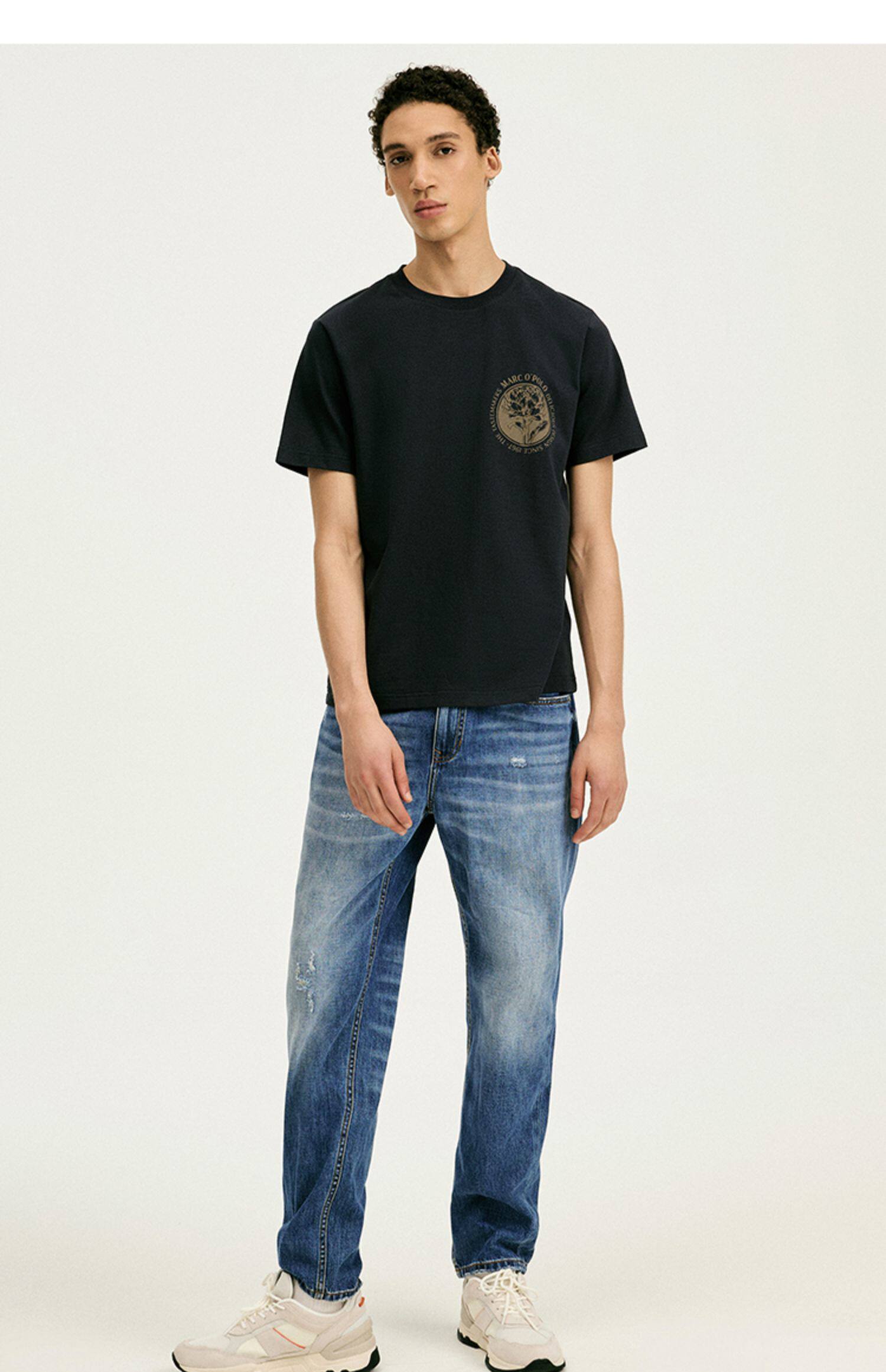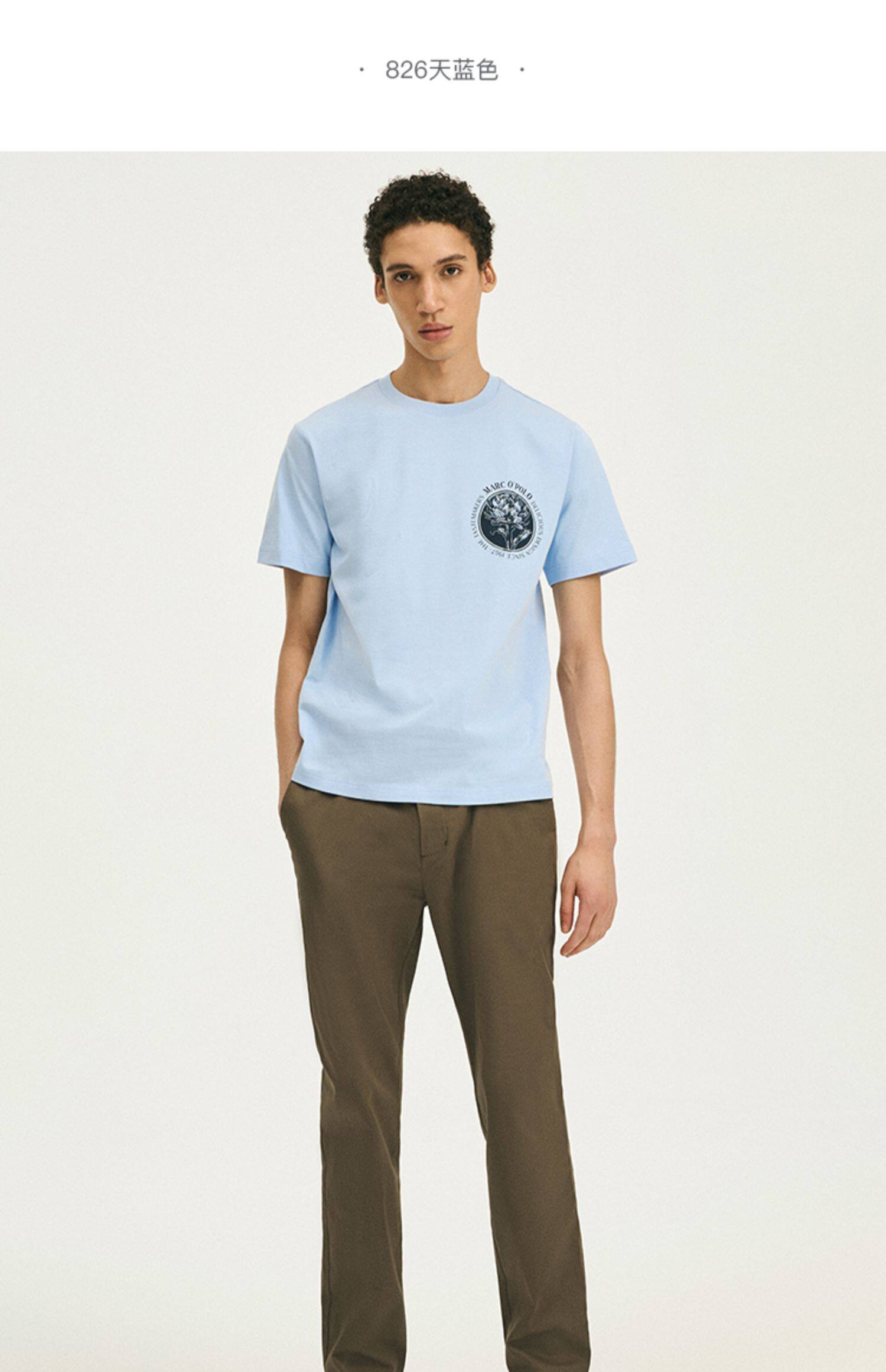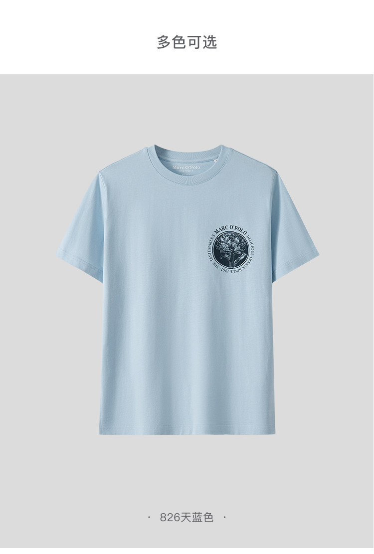 Marc O'Polo/MOP 春夏新款休闲纯棉胸口简约印花宽松短袖T恤男士