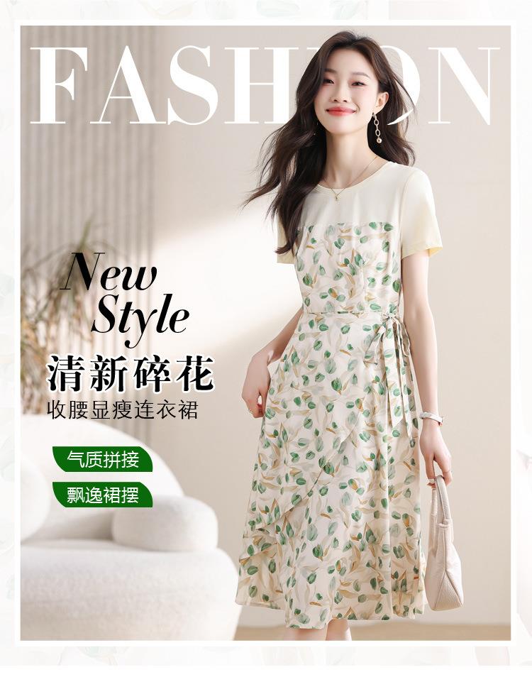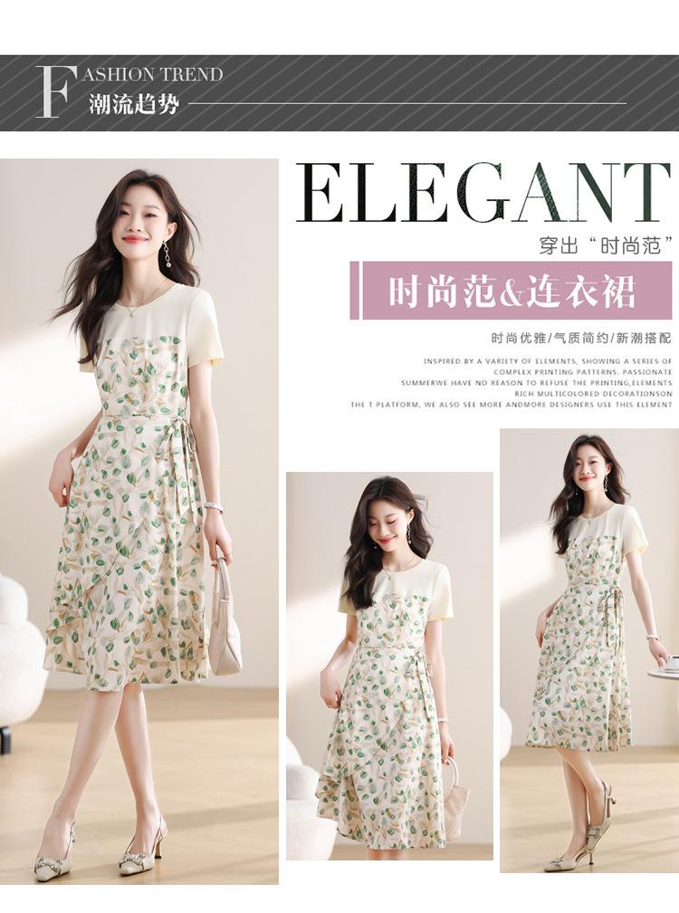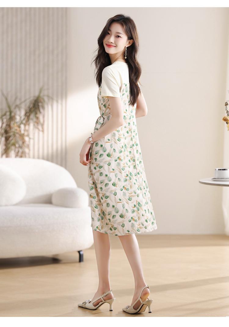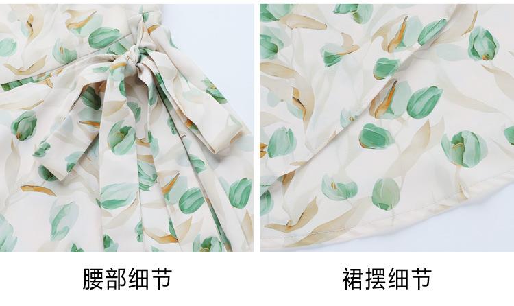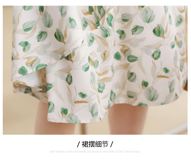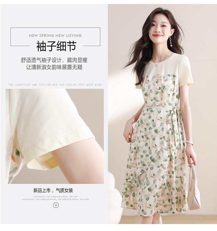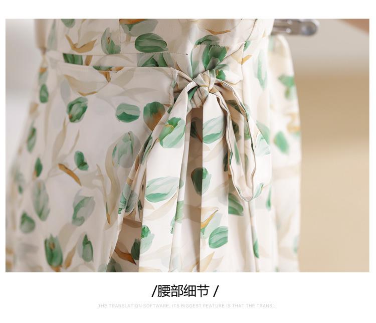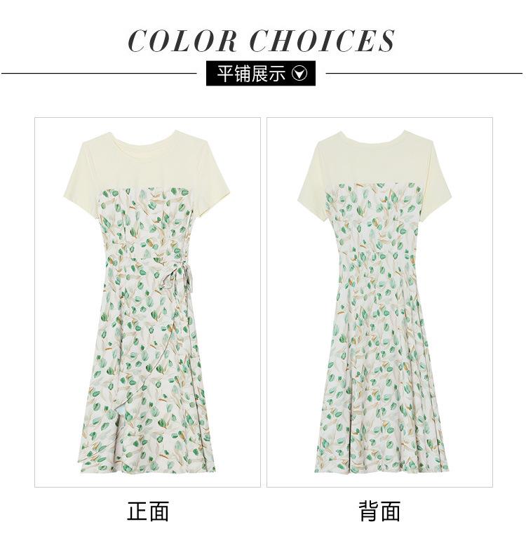假两件碎花连衣裙女款2024夏季新款法式短袖郁金香印花荷叶边裙子