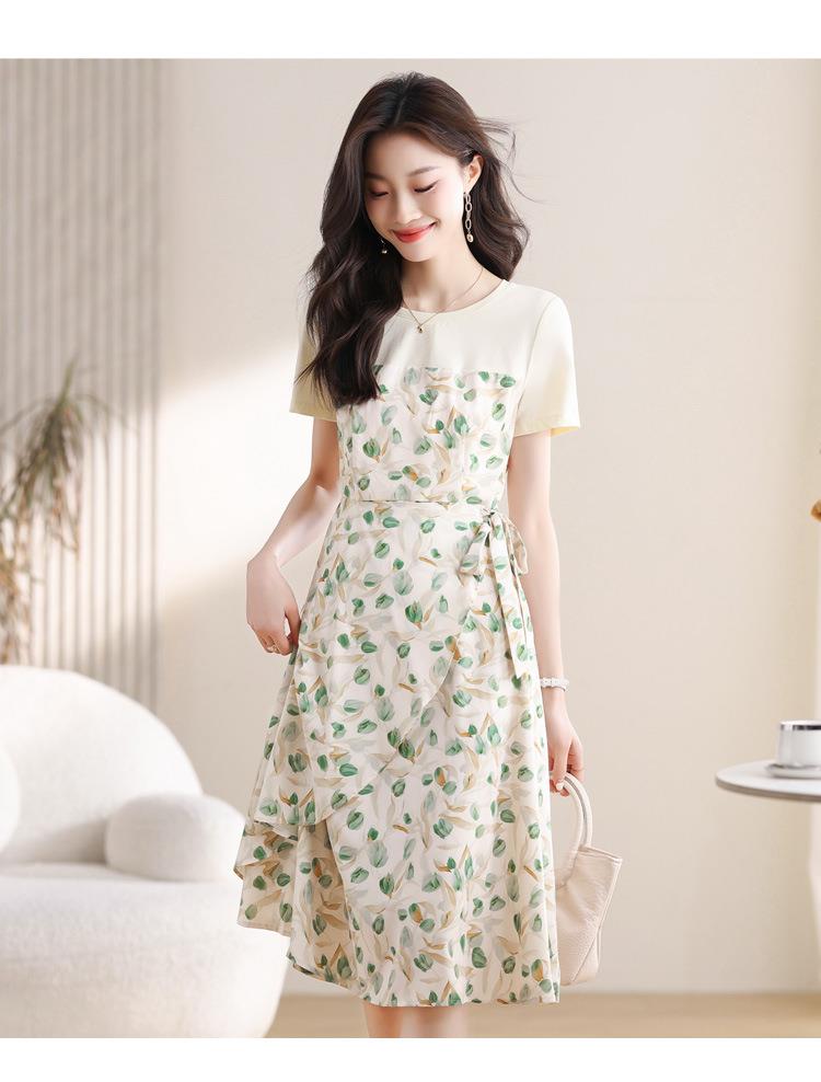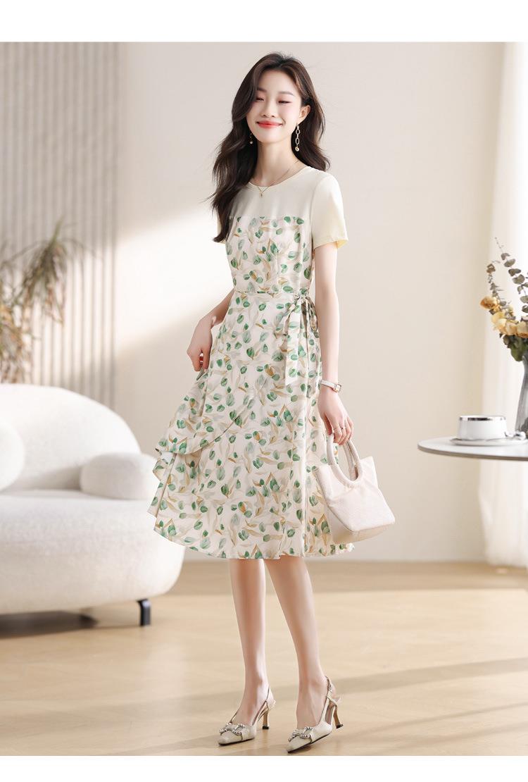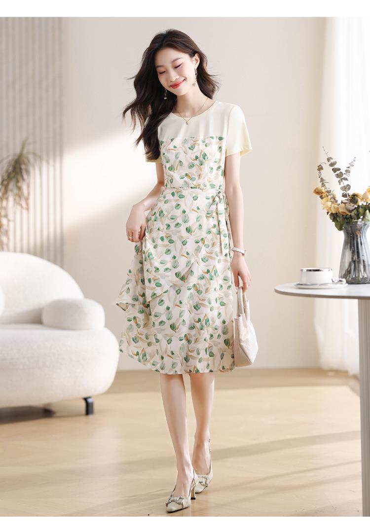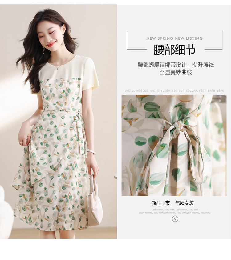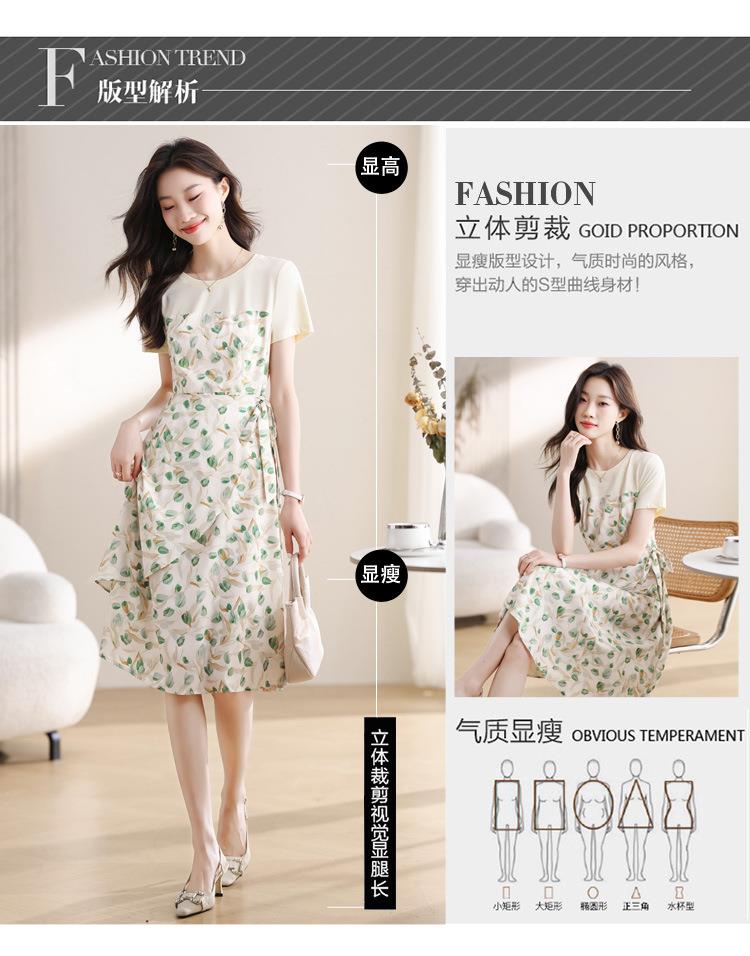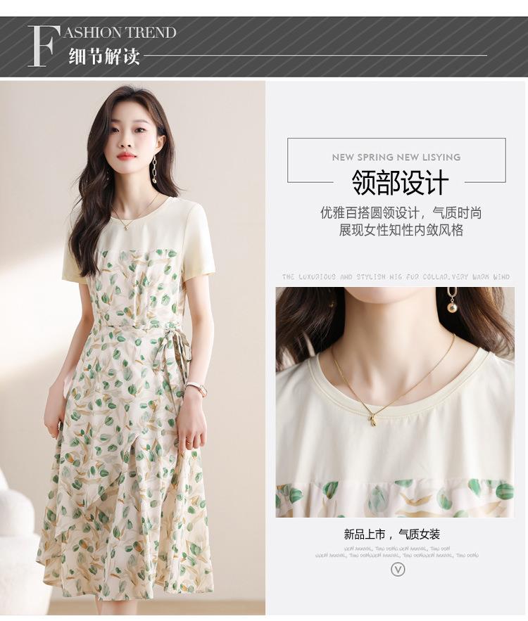 假两件碎花连衣裙女款2024夏季新款法式短袖郁金香印花荷叶边裙子