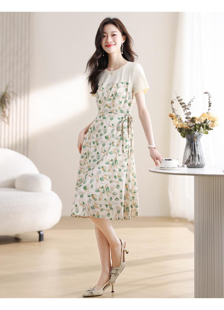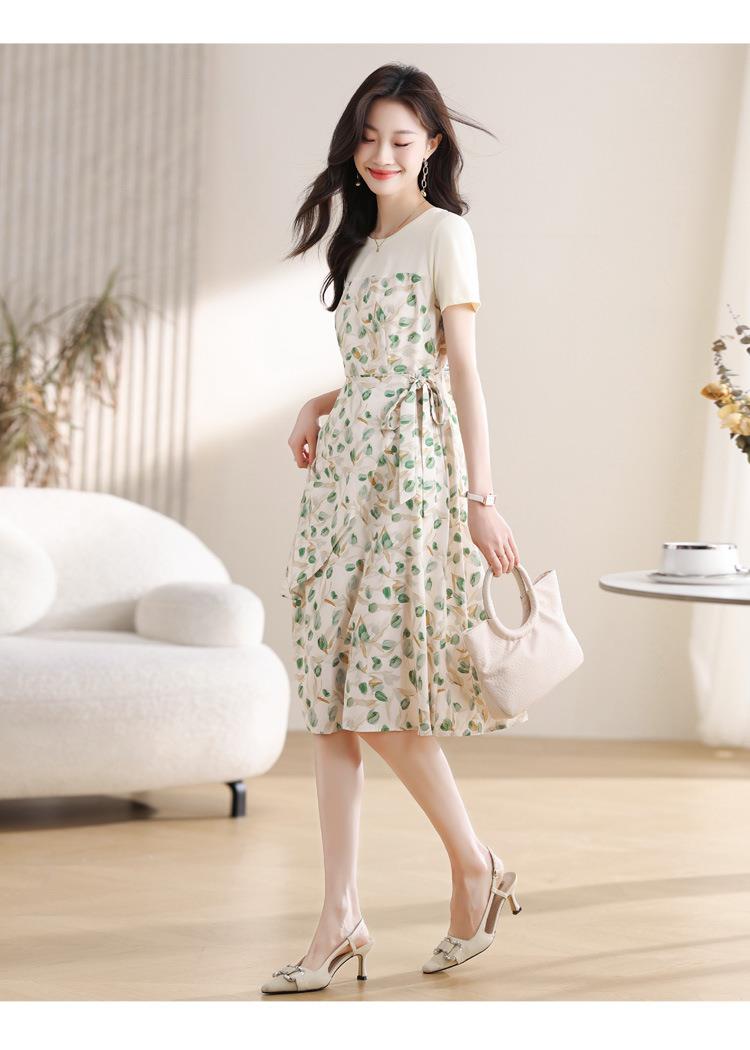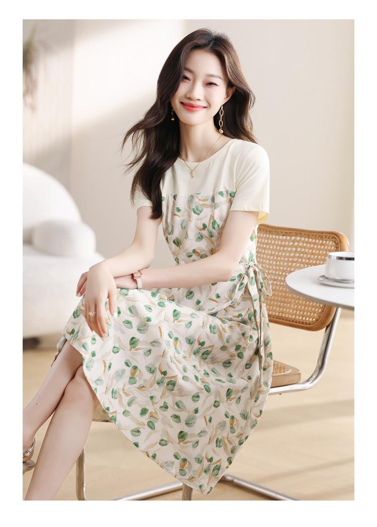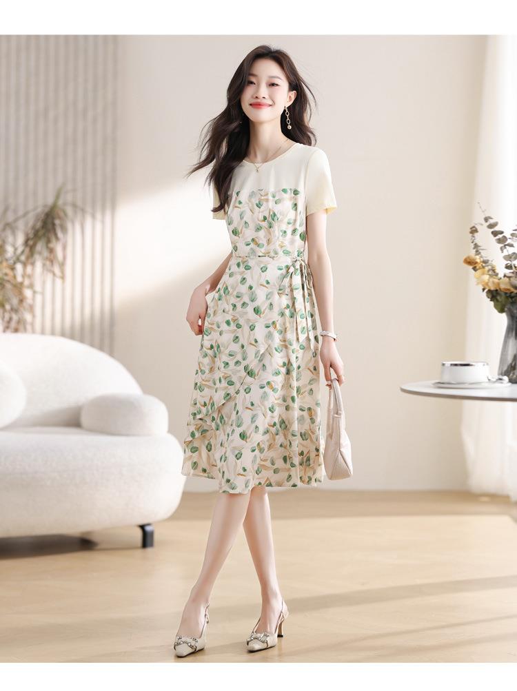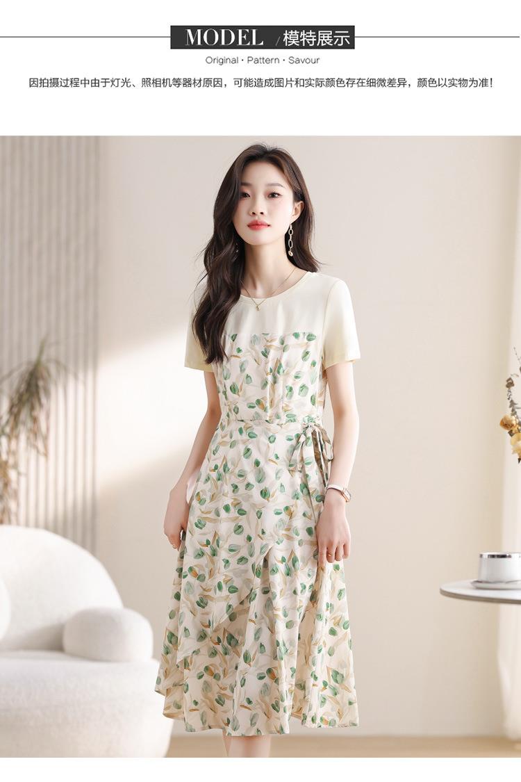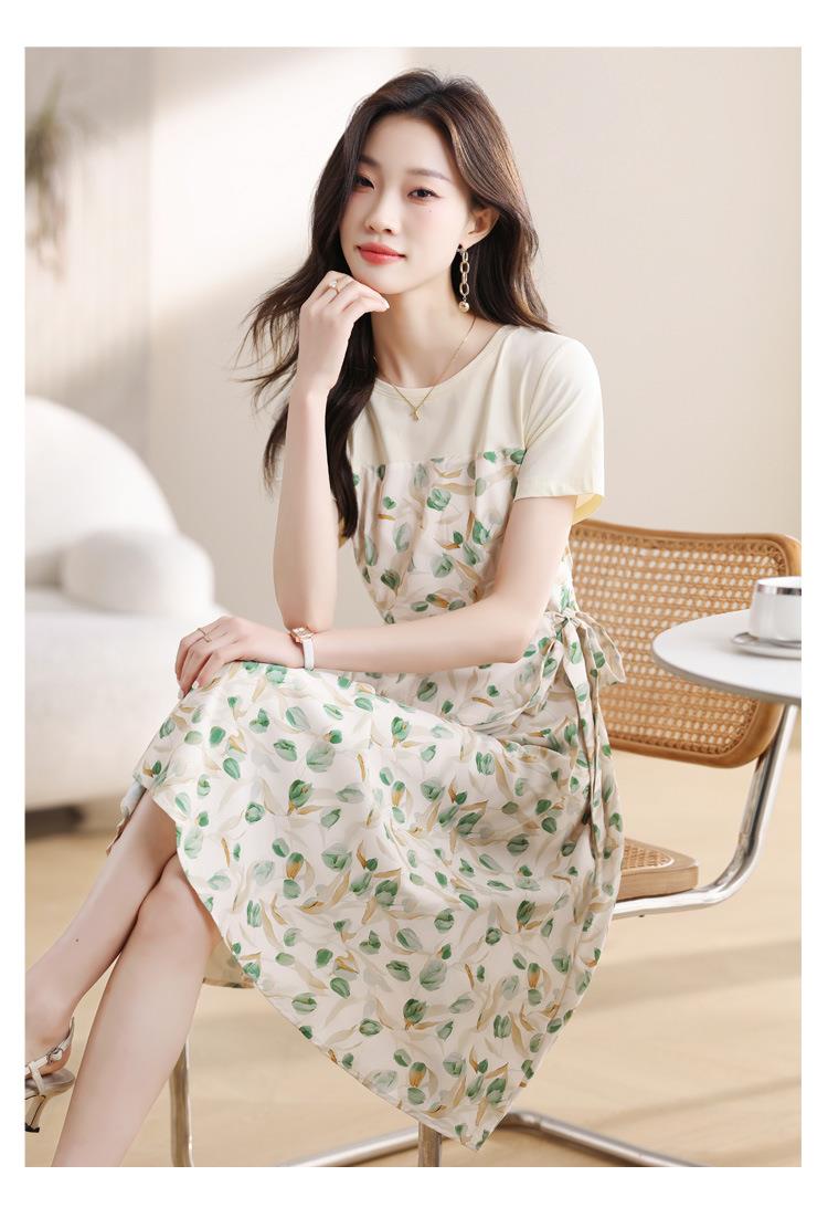 假两件碎花连衣裙女款2024夏季新款法式短袖郁金香印花荷叶边裙子