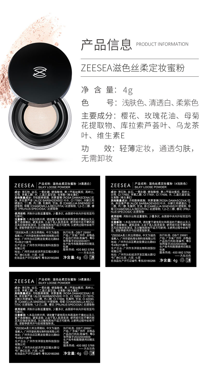 [散粉]【3件5折丨专区购满3件即送卸妆水50ml】[小滋特惠]ZEESEA滋色丝柔定妆蜜粉散粉(拍下3件立减)