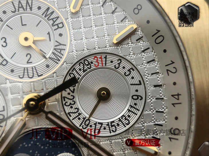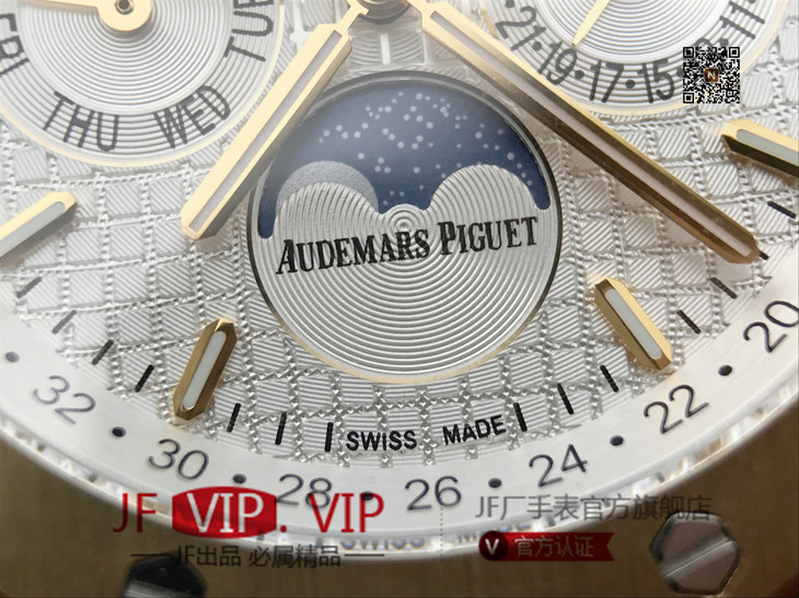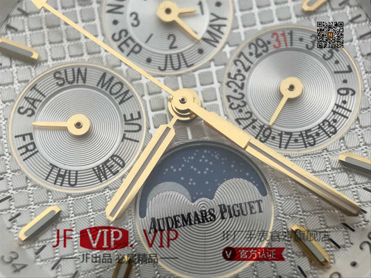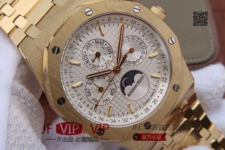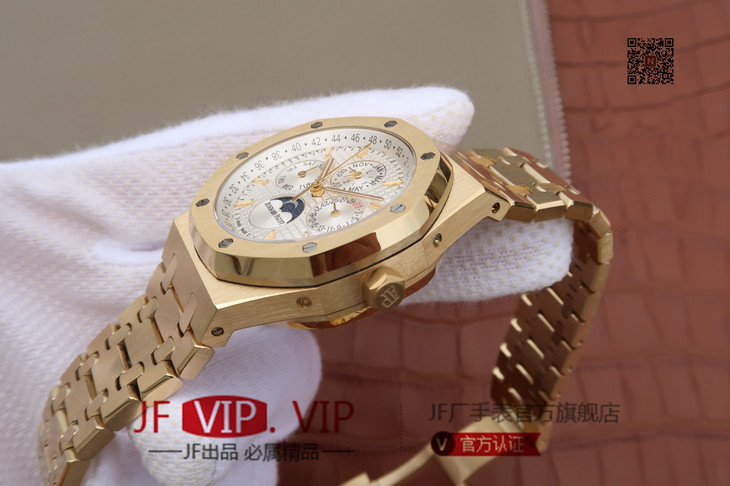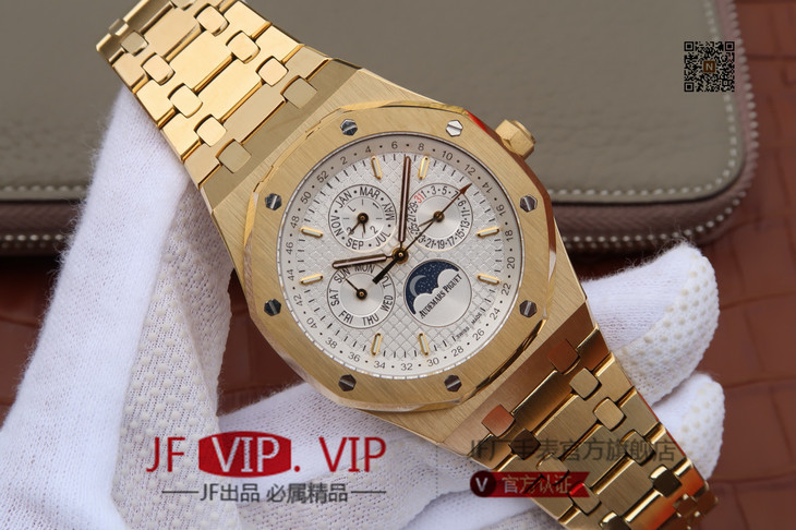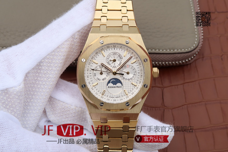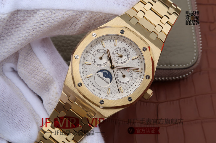 JF爱彼皇家橡树26579。功能:日期显示、星期显示、月份显示、年历显示、万年历、月相进口机克隆原装5134自动机械机芯,41毫米,男士手表腕表