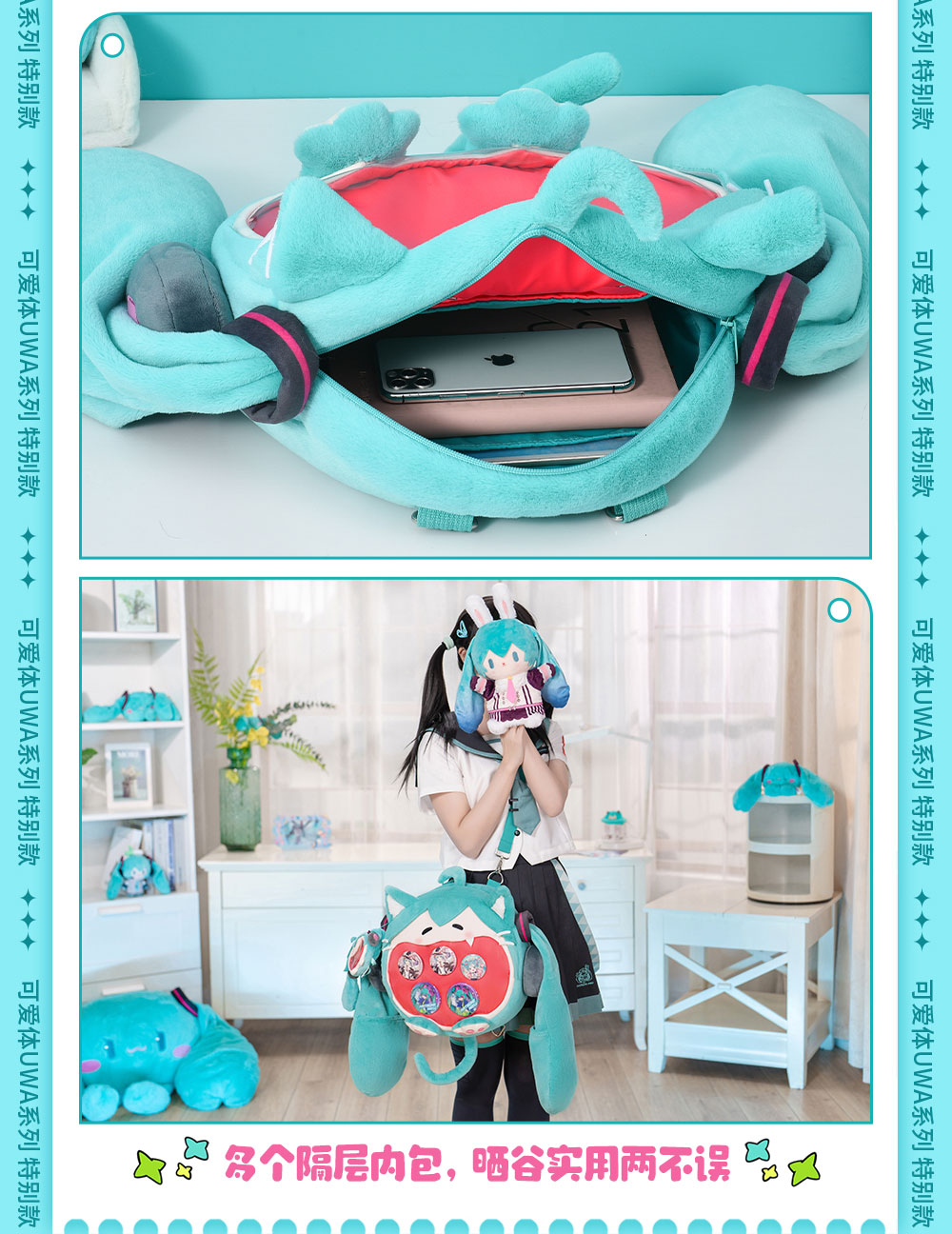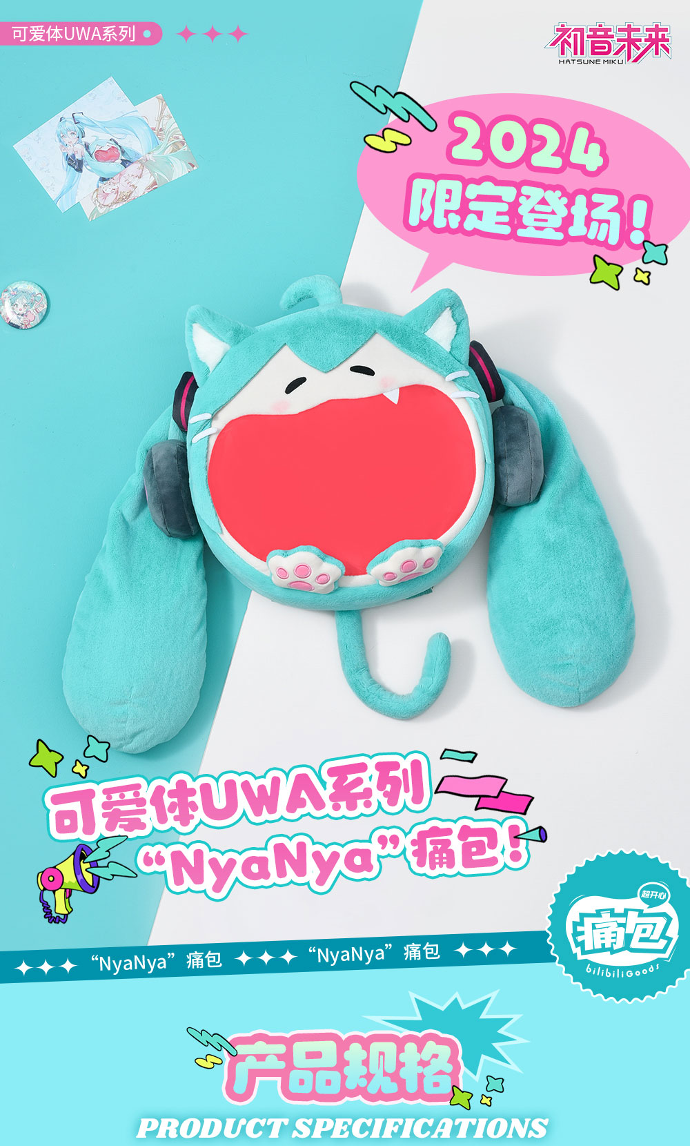 BilibiliGoods VOCALOID 可爱体UWA系列4WAYS收纳痛包 初音未来2024NYANYA特别款