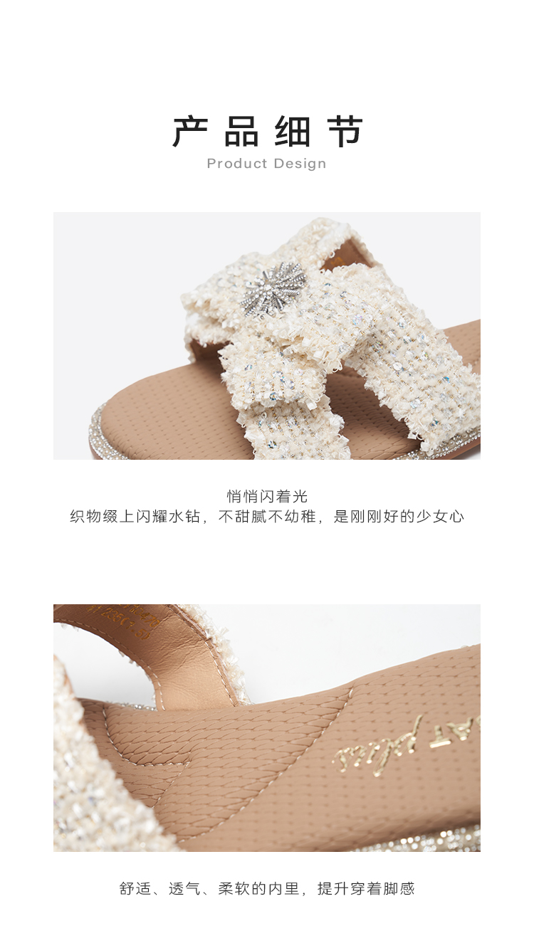 星期六26夏新款微光蝴蝶结小香风凉拖SSE2110470