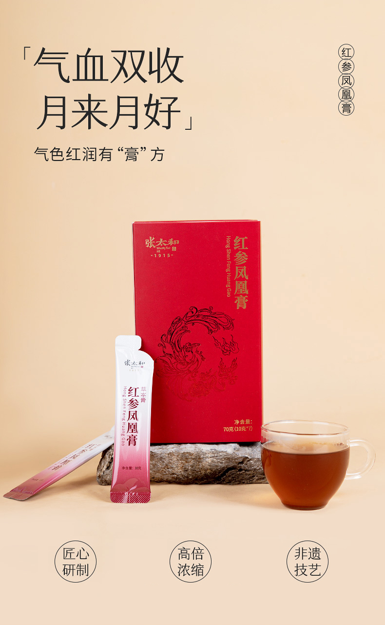 非遗技艺 古法熬制【张太和·红参凤凰膏】百年字号出品 ,1000斤食材熬制,19味“生血类”珍贵材料,气血亏虚、头晕眼黑手脚冰冷、姨妈痛不规律的闭眼入!!