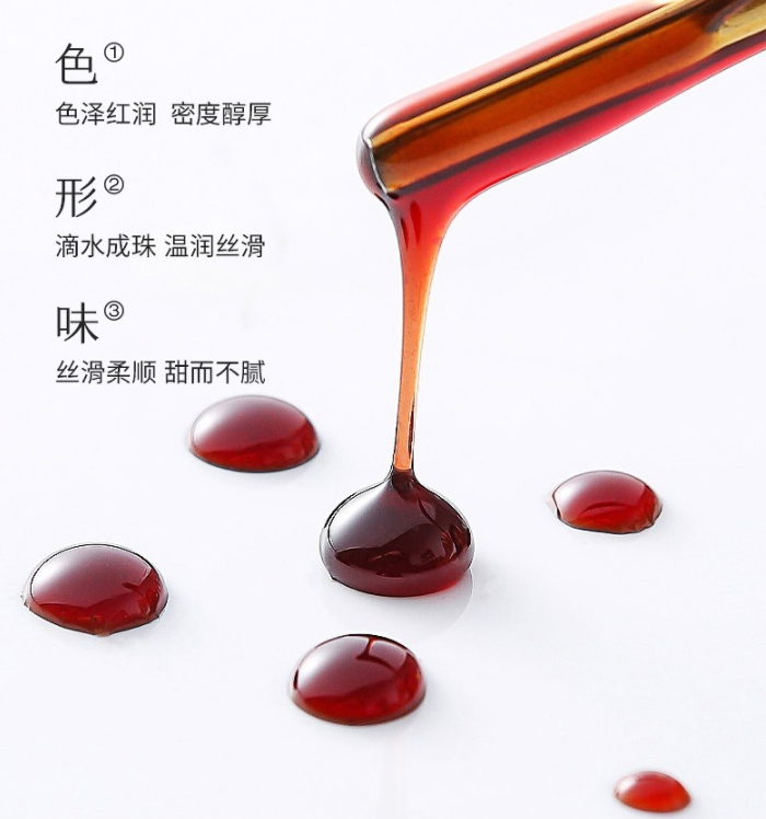 匠心熬制好膏,每一道工序都非常考究,煎熬时间、入胶火候、出膏老嫩程度……都控制得当,太嫩不宜储存,太老不便服用。熬好的膏滋颜色透亮,无杂质。