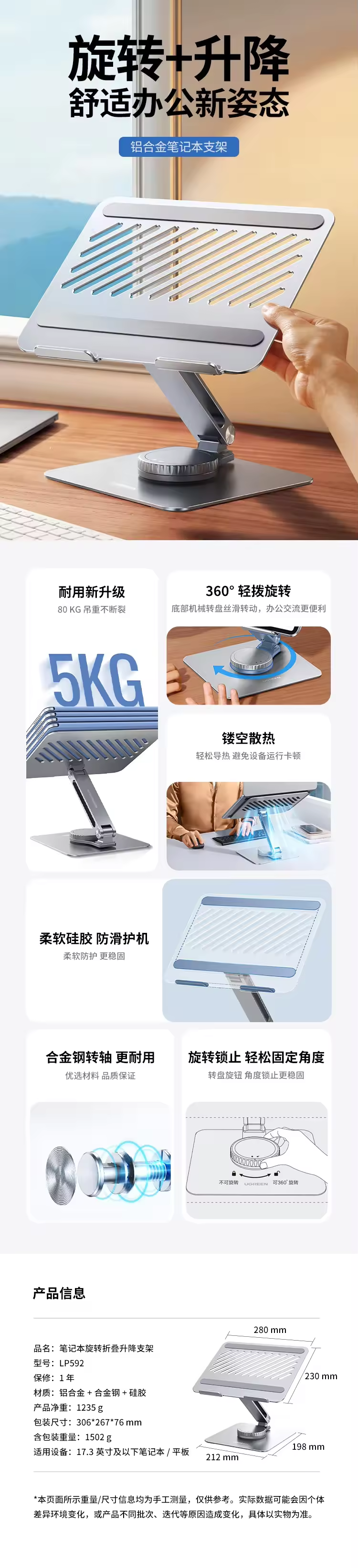 支架 CPU旋转折叠 银 - 绿联