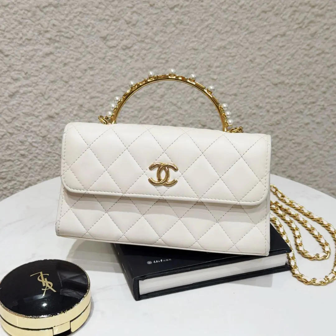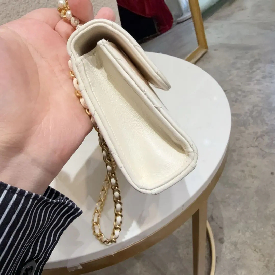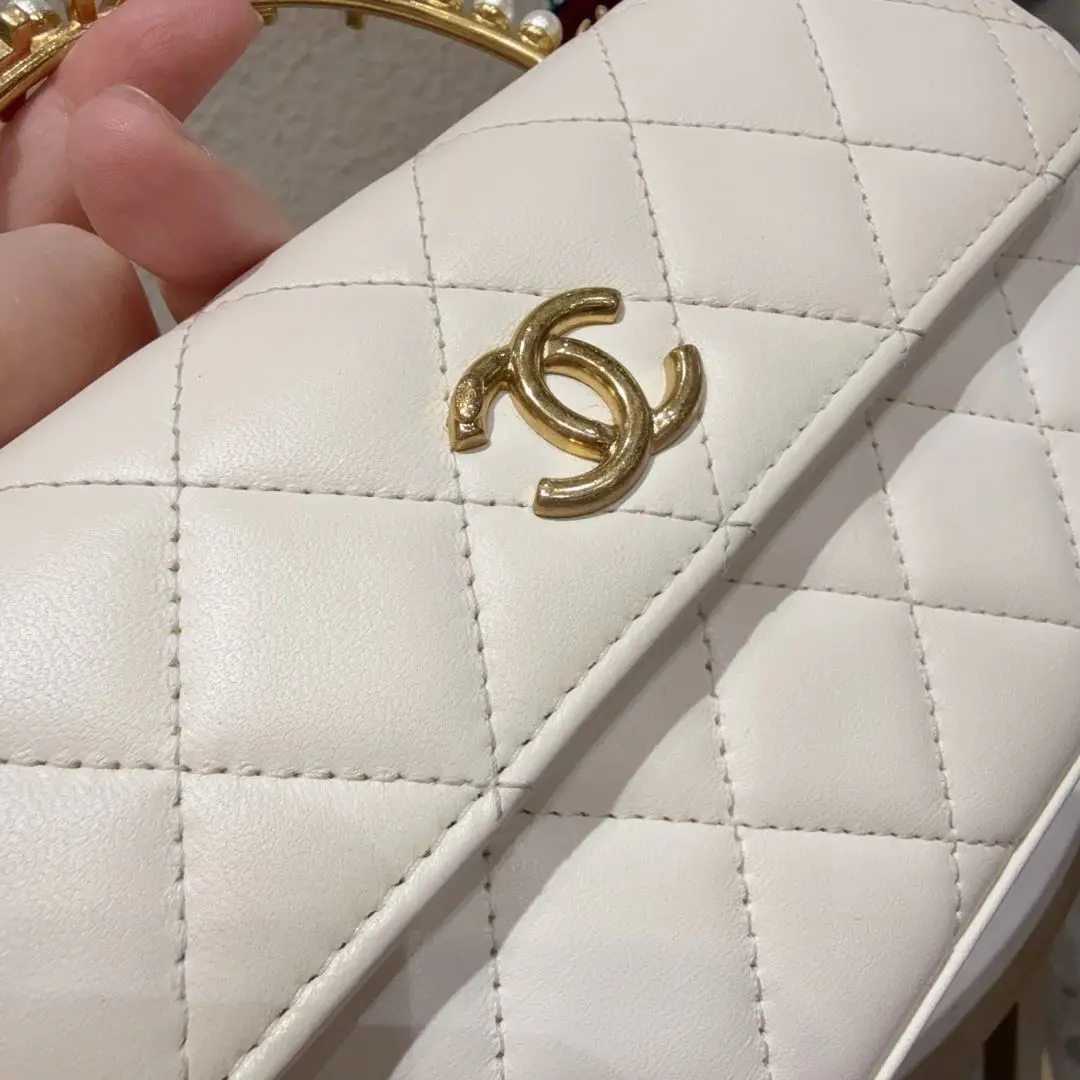 【商品详情】正品二手 Chanel 23B 白金 珍珠钻石 手柄 羊皮 斜挎包😋95新 18*10 配件:票。内里正常使用感。精致优雅