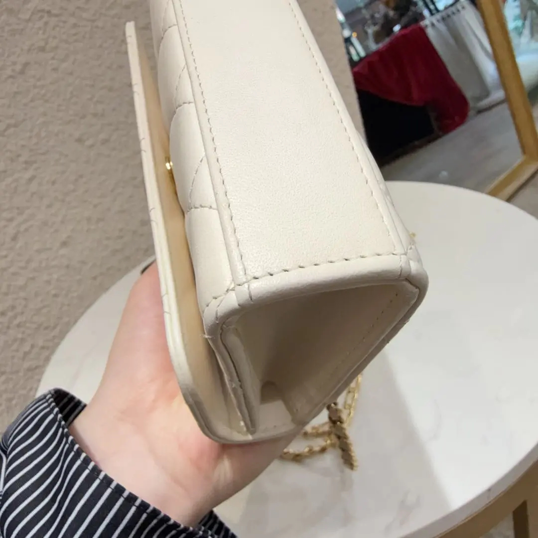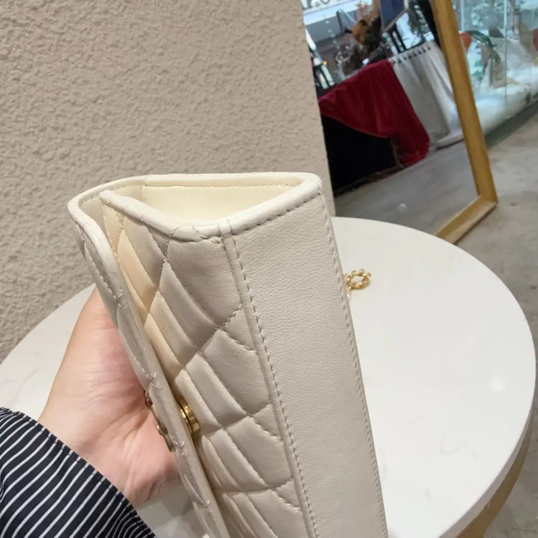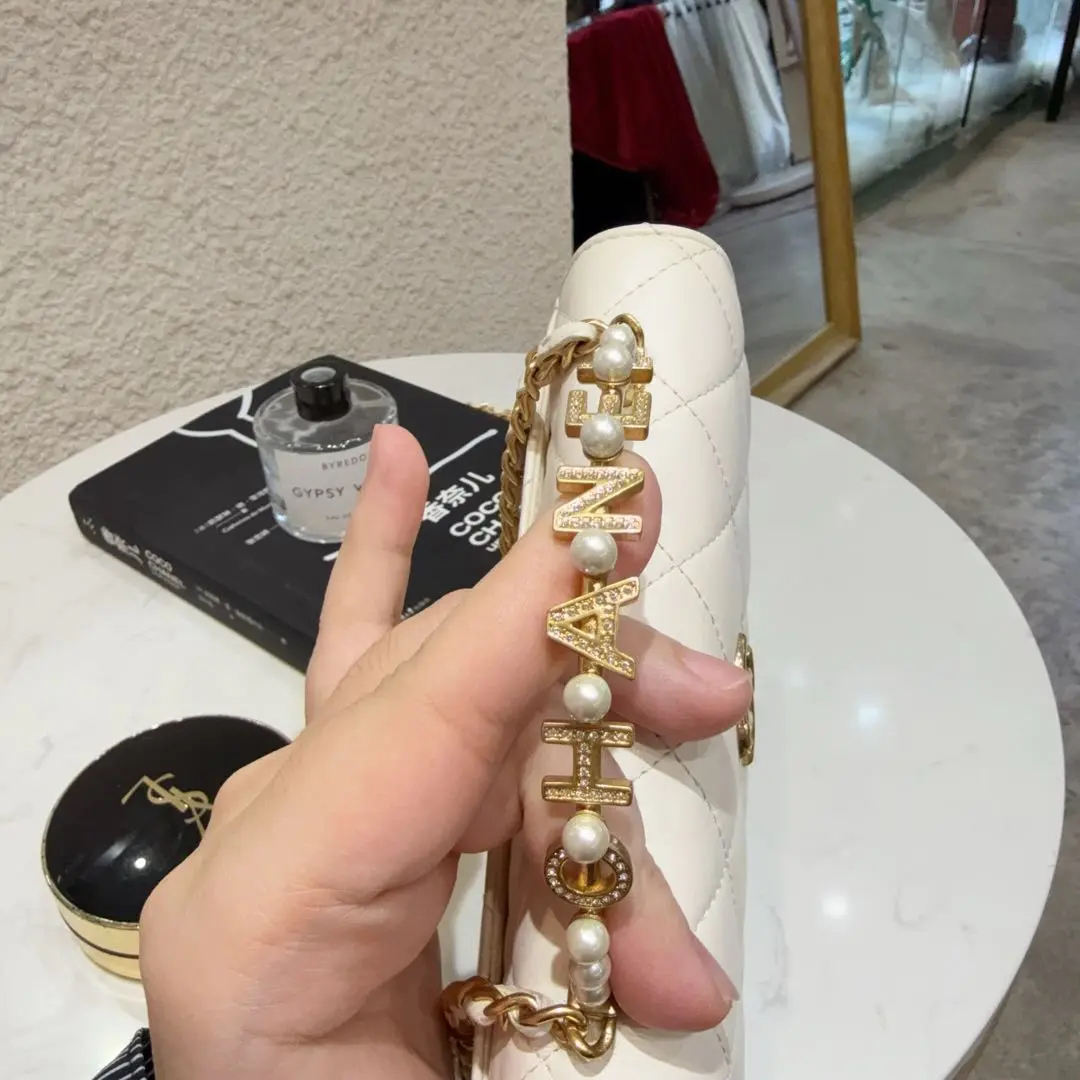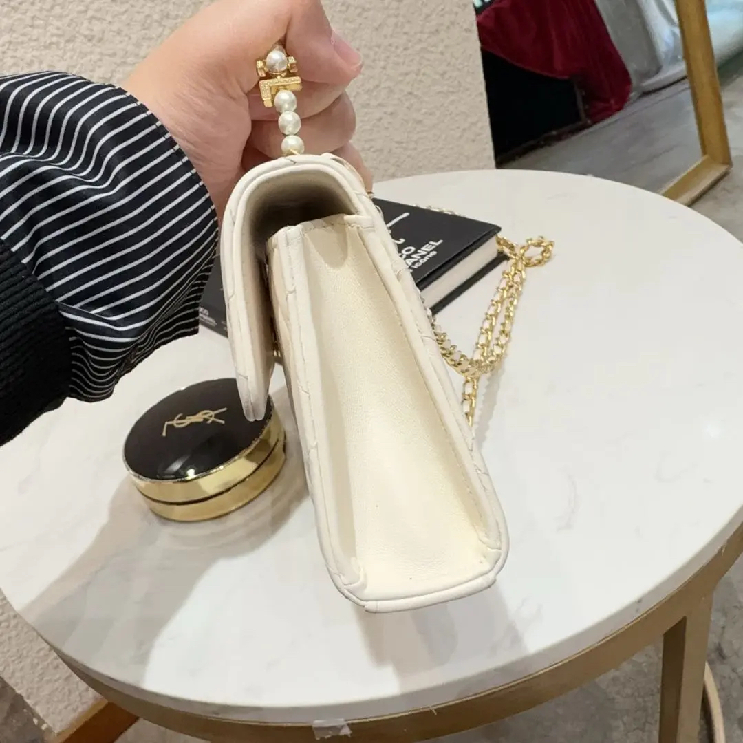 【商品详情】正品二手 Chanel 23B 白金 珍珠钻石 手柄 羊皮 斜挎包😋95新 18*10 配件:票。内里正常使用感。精致优雅